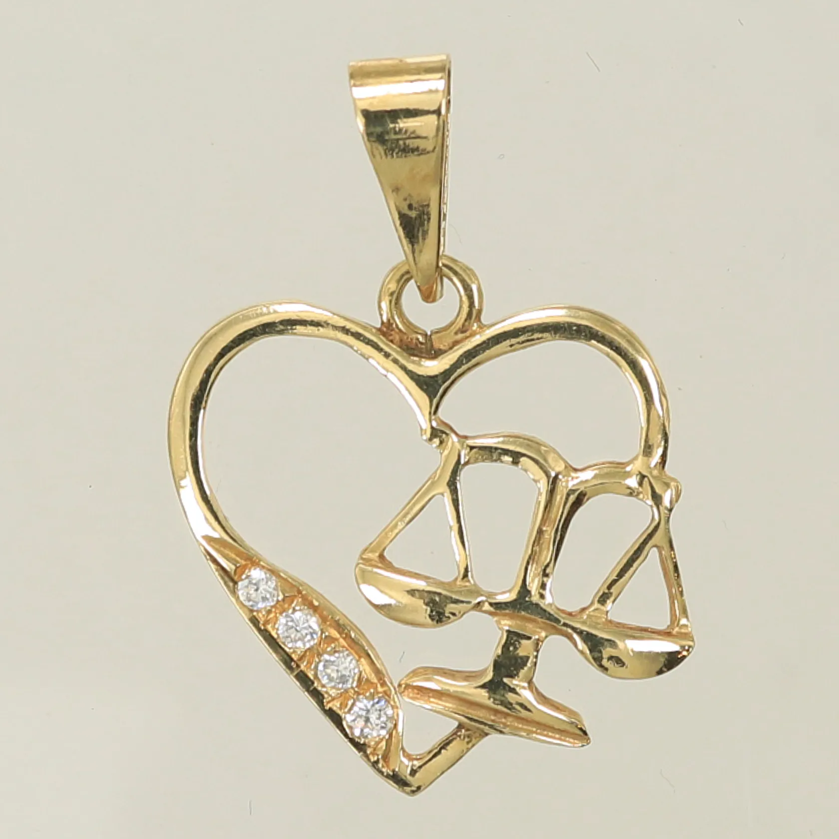 Hänge hjärta och våg med vita stenar, längd 26mm inkl ögla, bredd 18mm, 14K, 1,5g Vikt: 1,5 g.