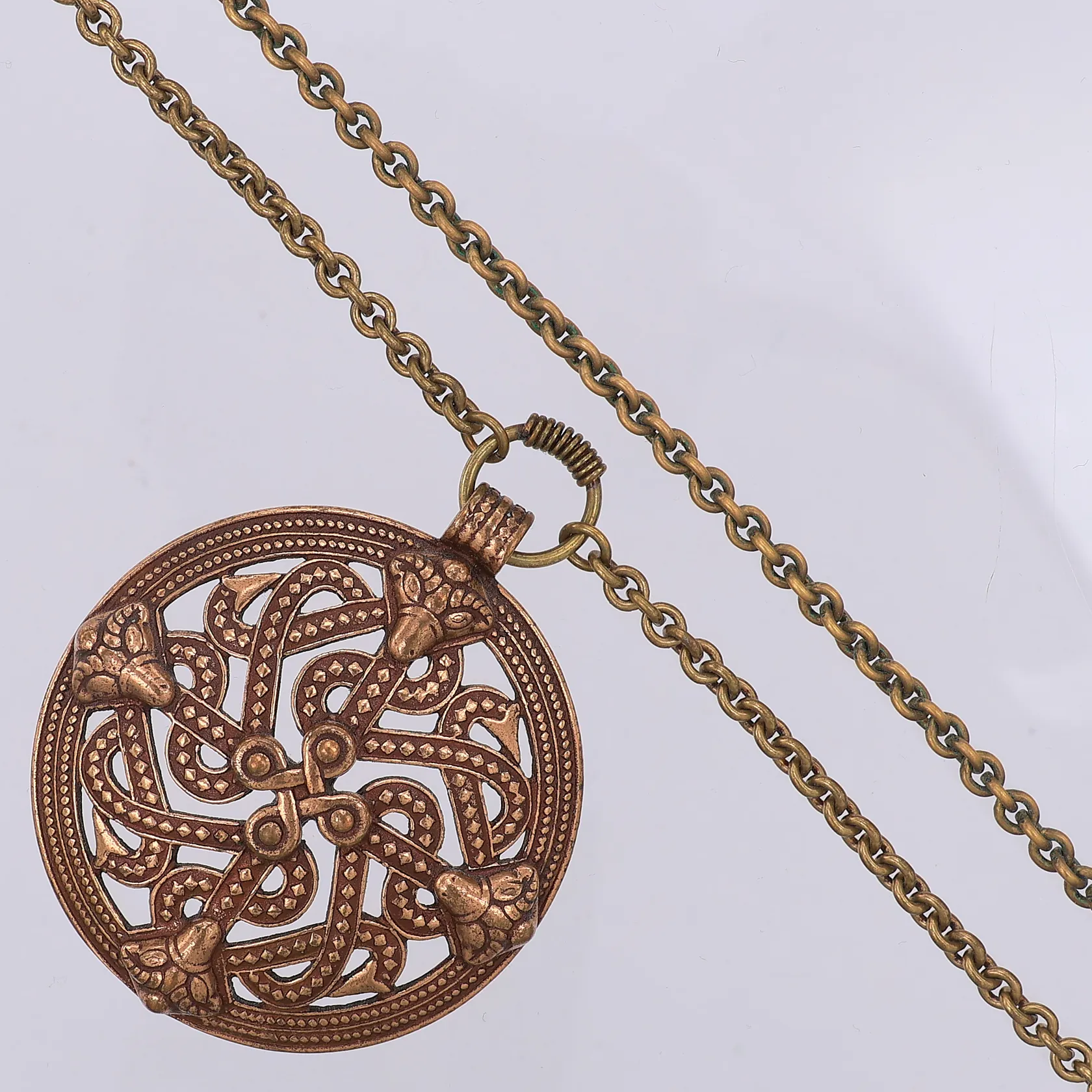 Collier Kalevala hängdel ca 65mm kedjan ca 78cm, brons, träs överhuvudet