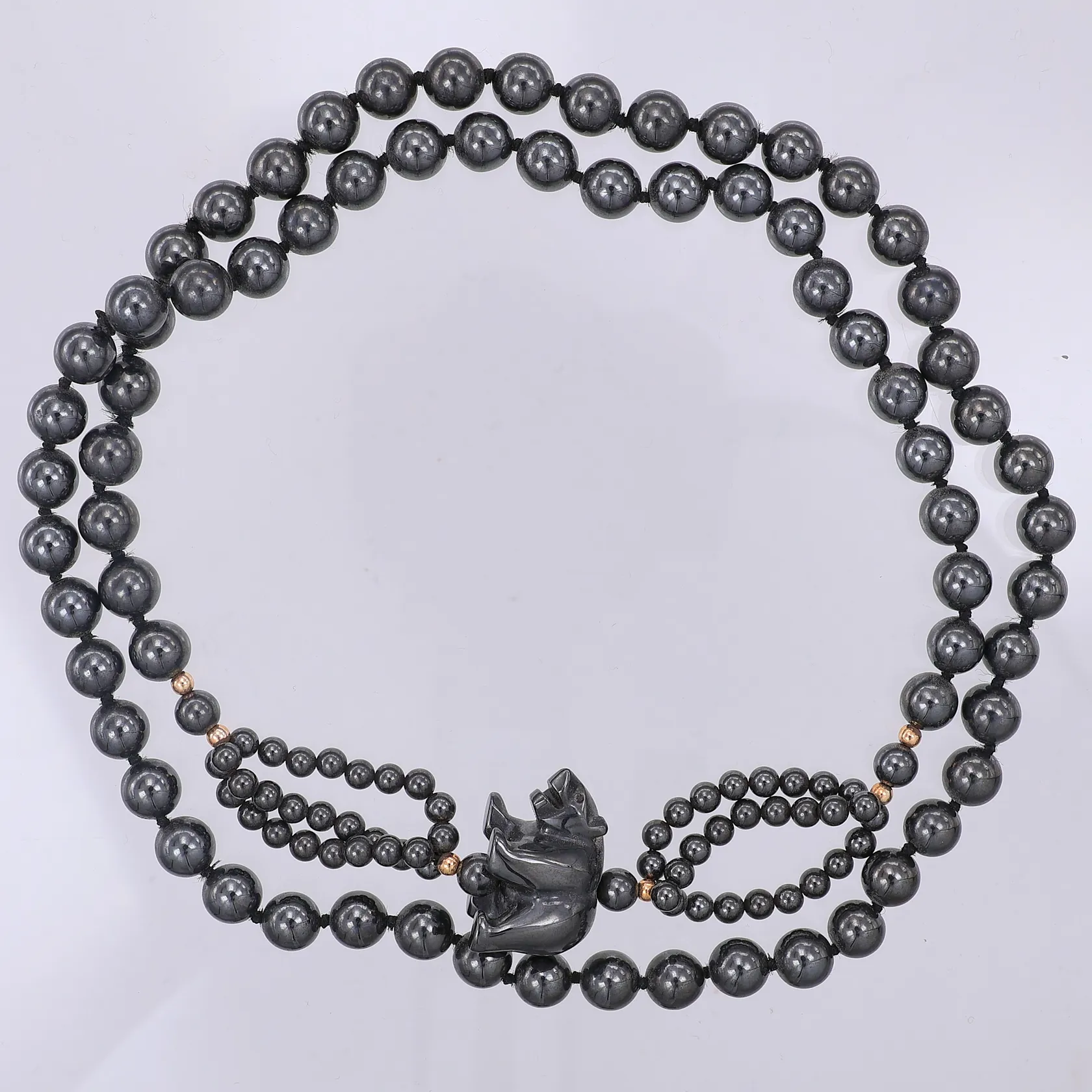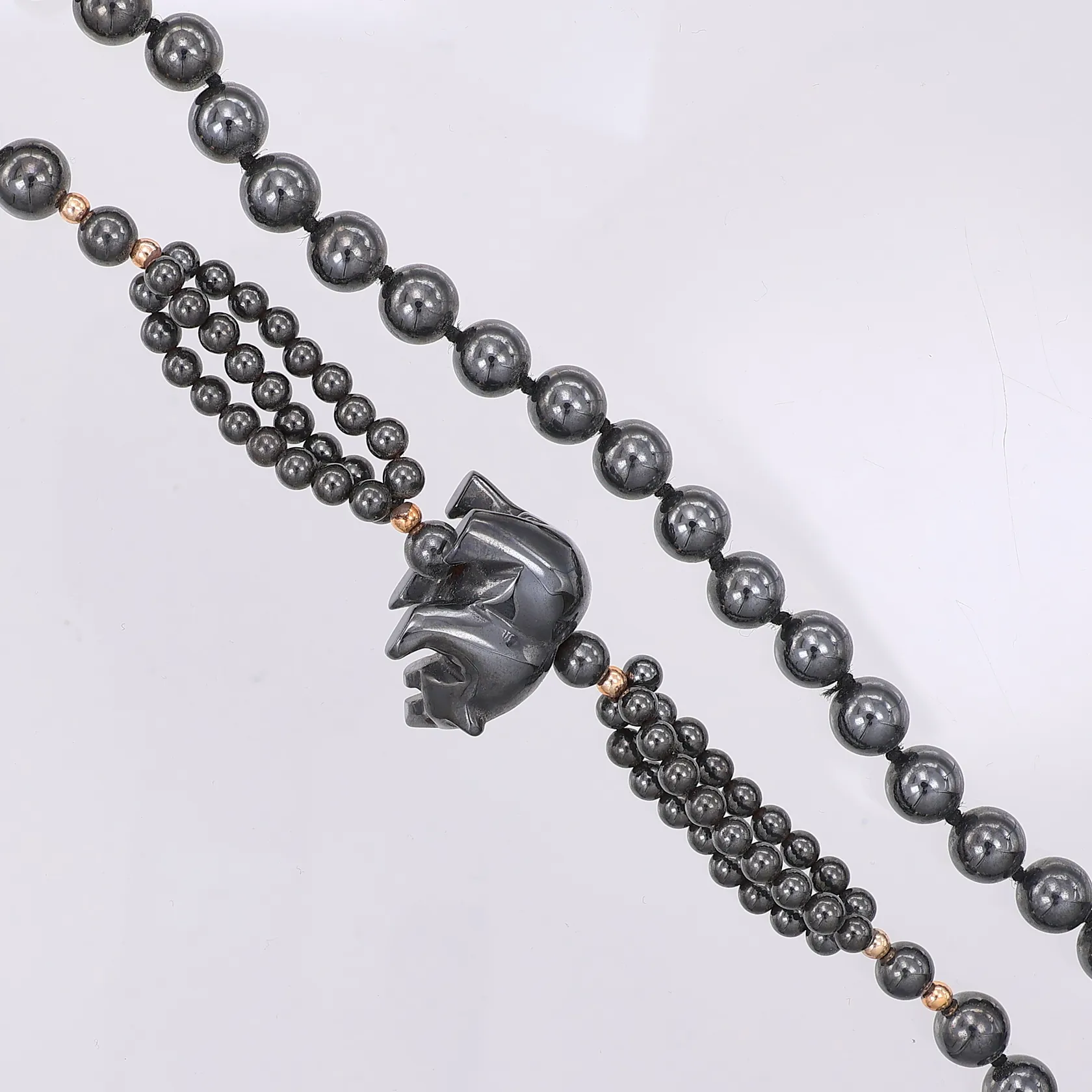 Collier hematiter med björn ca 72cm träs över huvudet