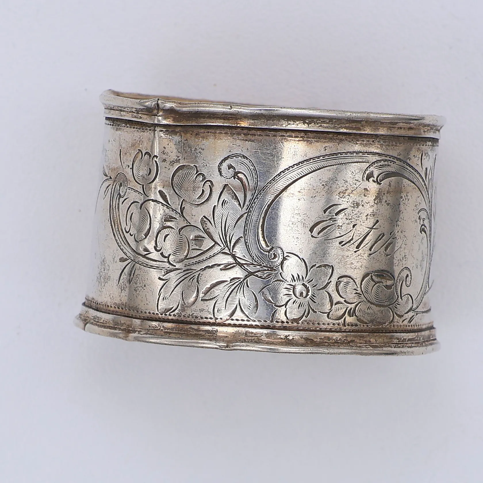 Servettring defekt, gravyr, kattfot 830/1000 silver Vikt: 14,7 g.