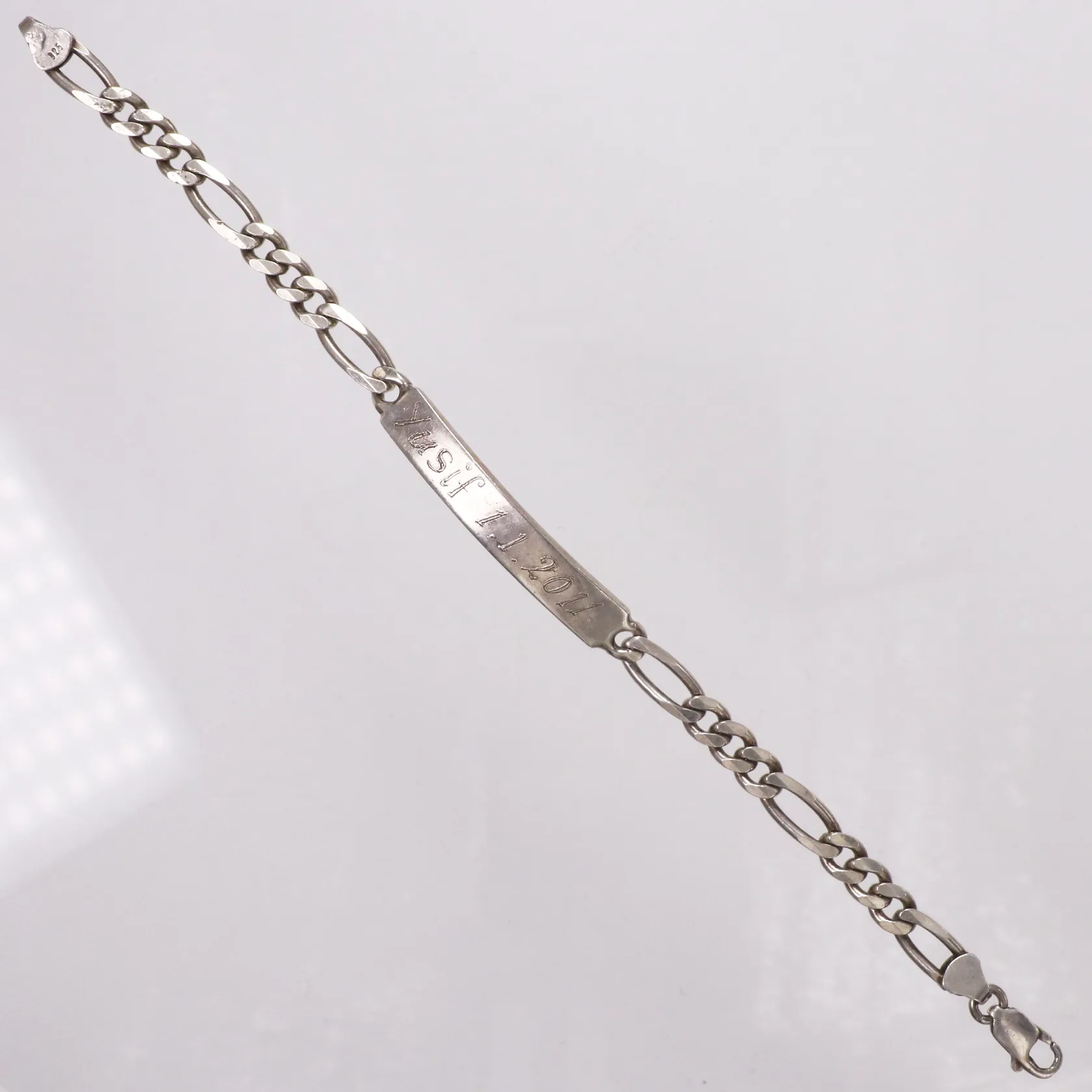 Armband Figaro platta, 21cm, bredd 6,4-7,8mm, gravyr, 925/1000 silver Vikt: 21 g.