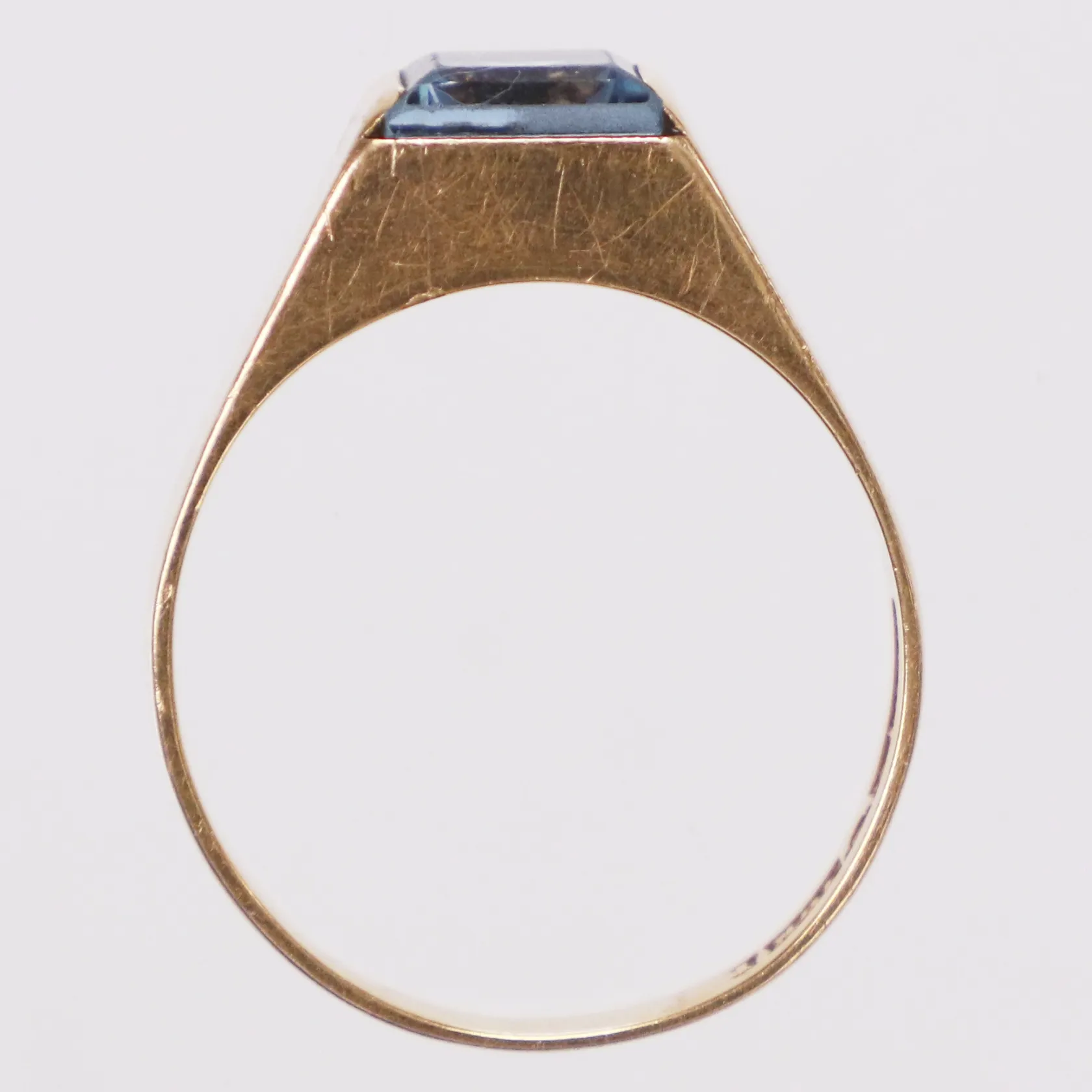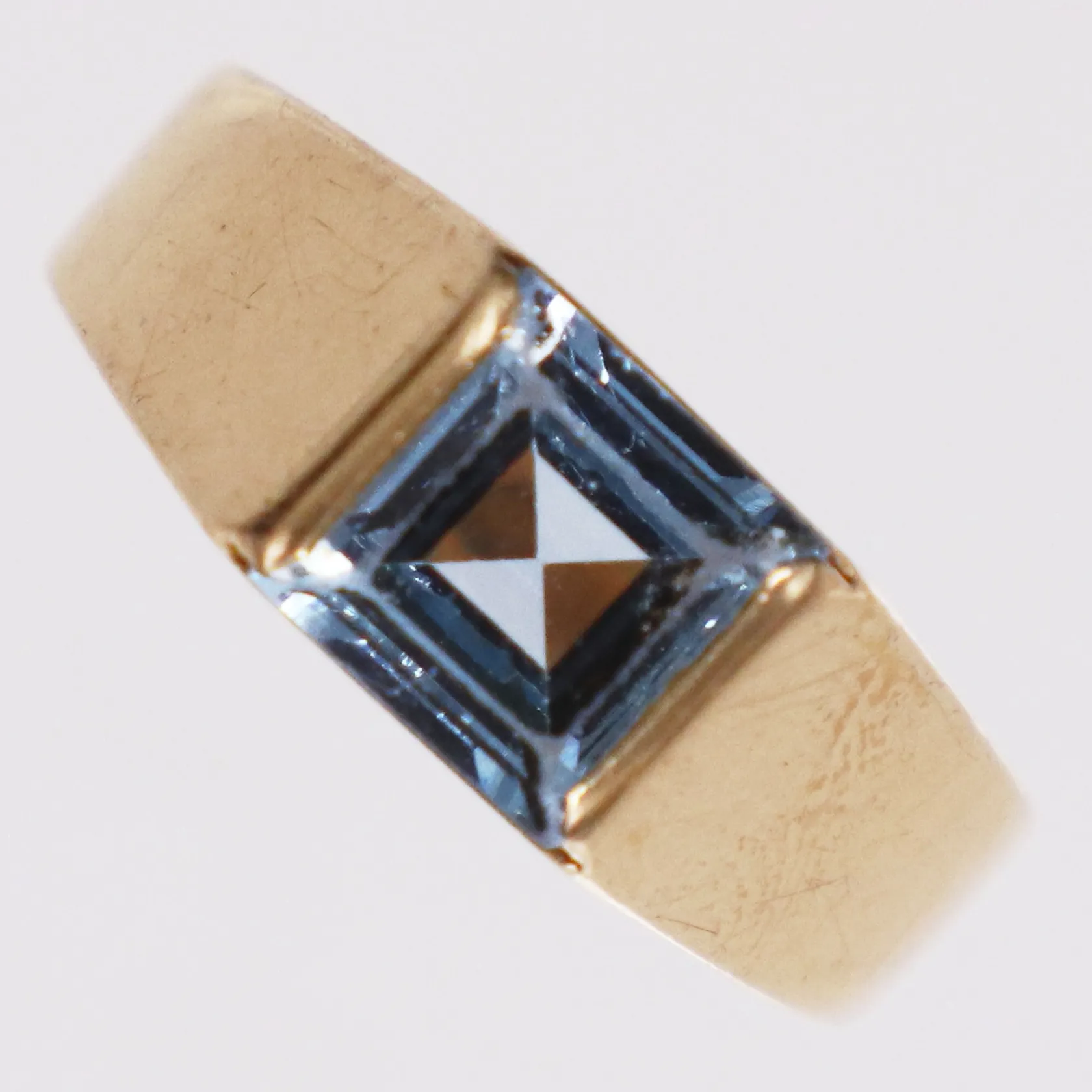 Ring ljusblå sten, stl 18, bredd 3,4-7mm, BEH Bengt Hallberg, 18K Vikt: 3,8 g.