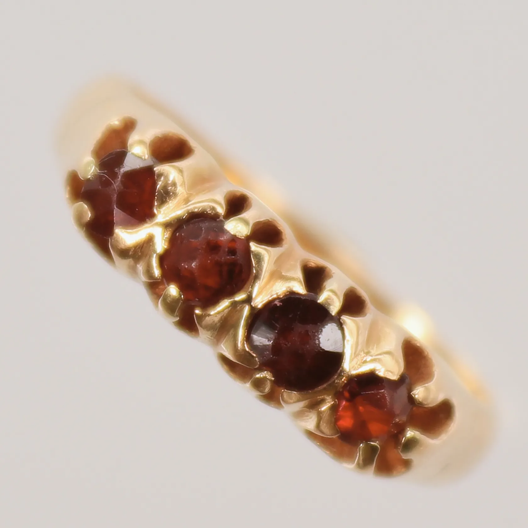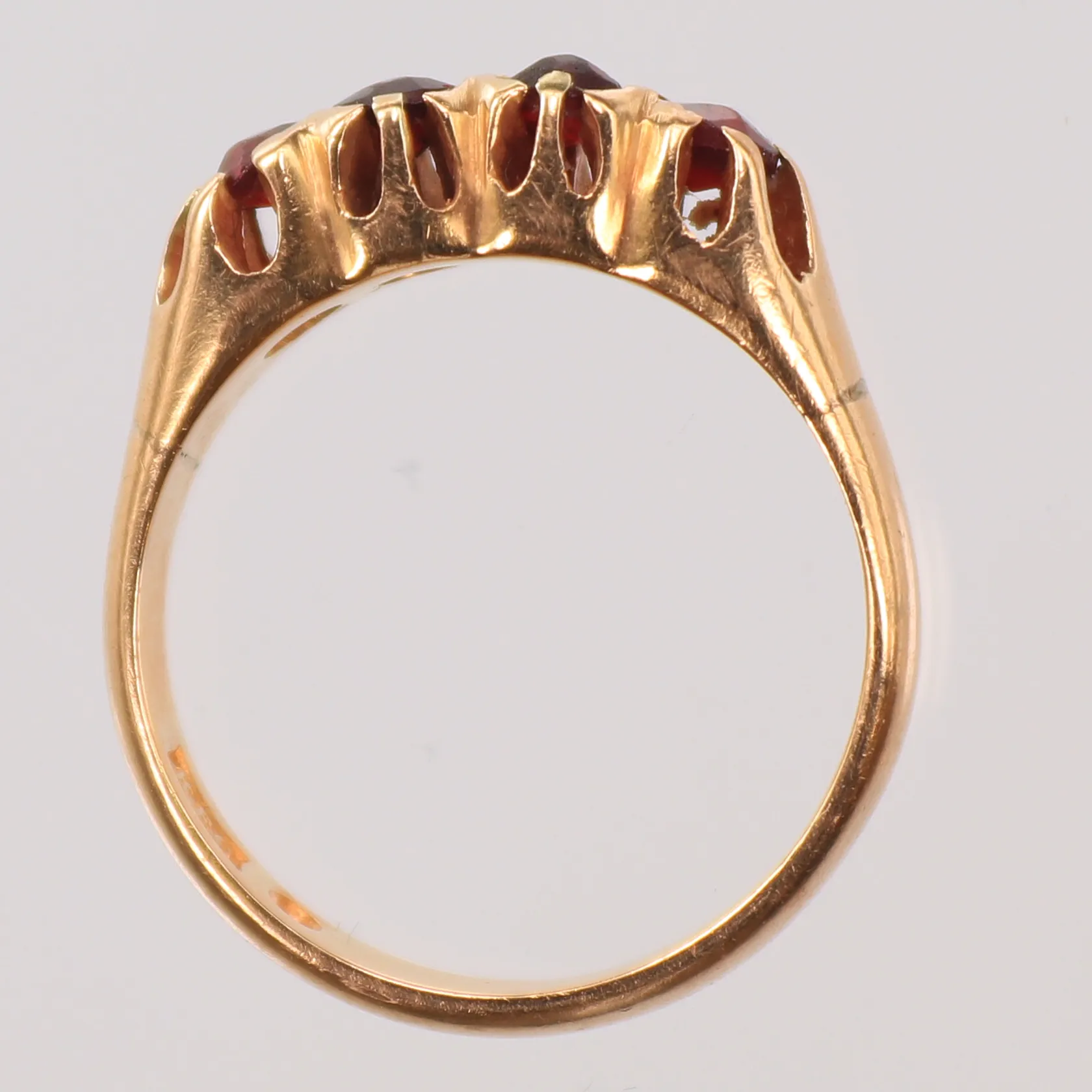 Ring med röda stenar, stl 16½, bredd 4-5mm, 18K, 4,7g Vikt: 4,7 g.
