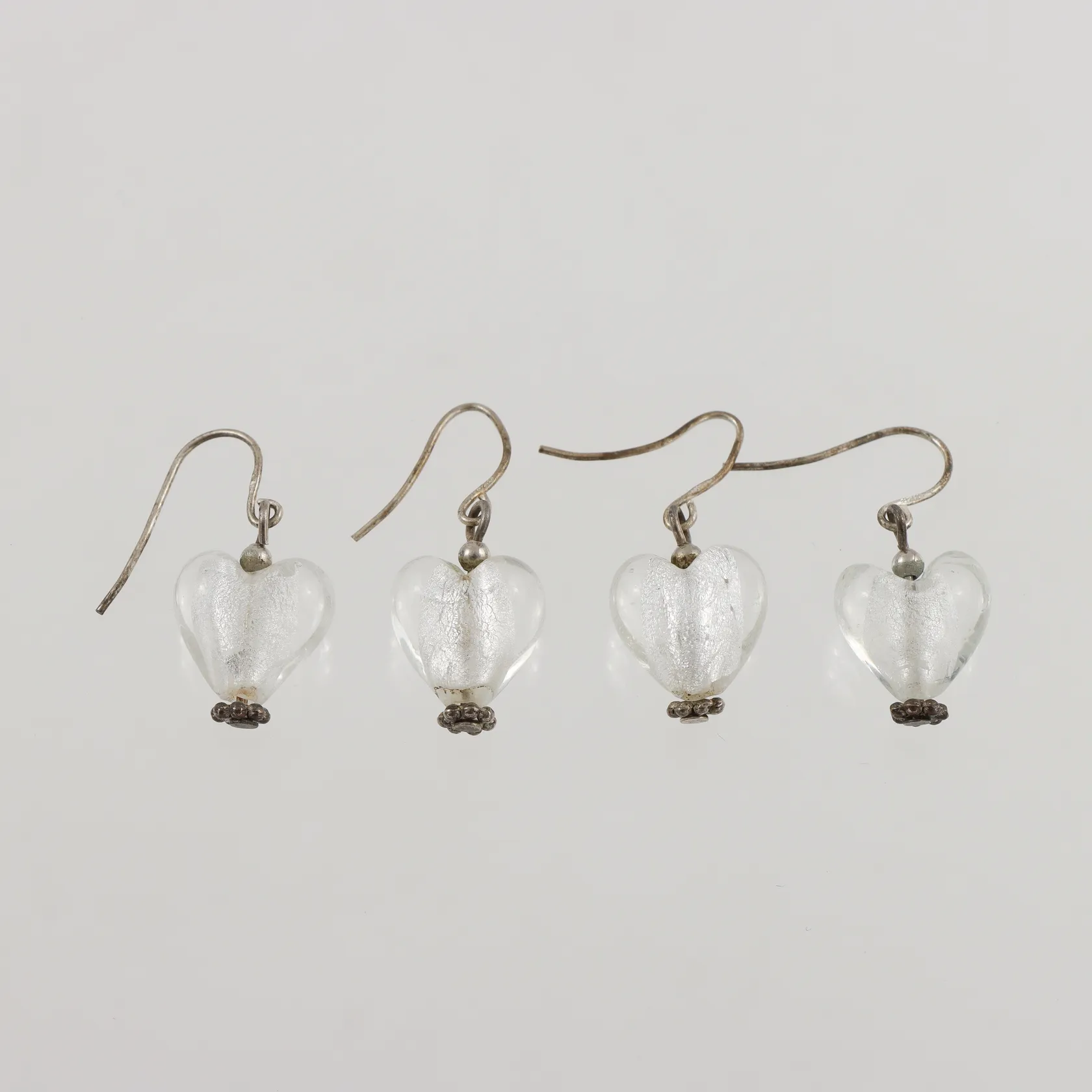 Två par örhängen med hjärtan i glas, 30mm, krokar, 925/1000 silver, 6,4g. Vikt: 6,4 g.