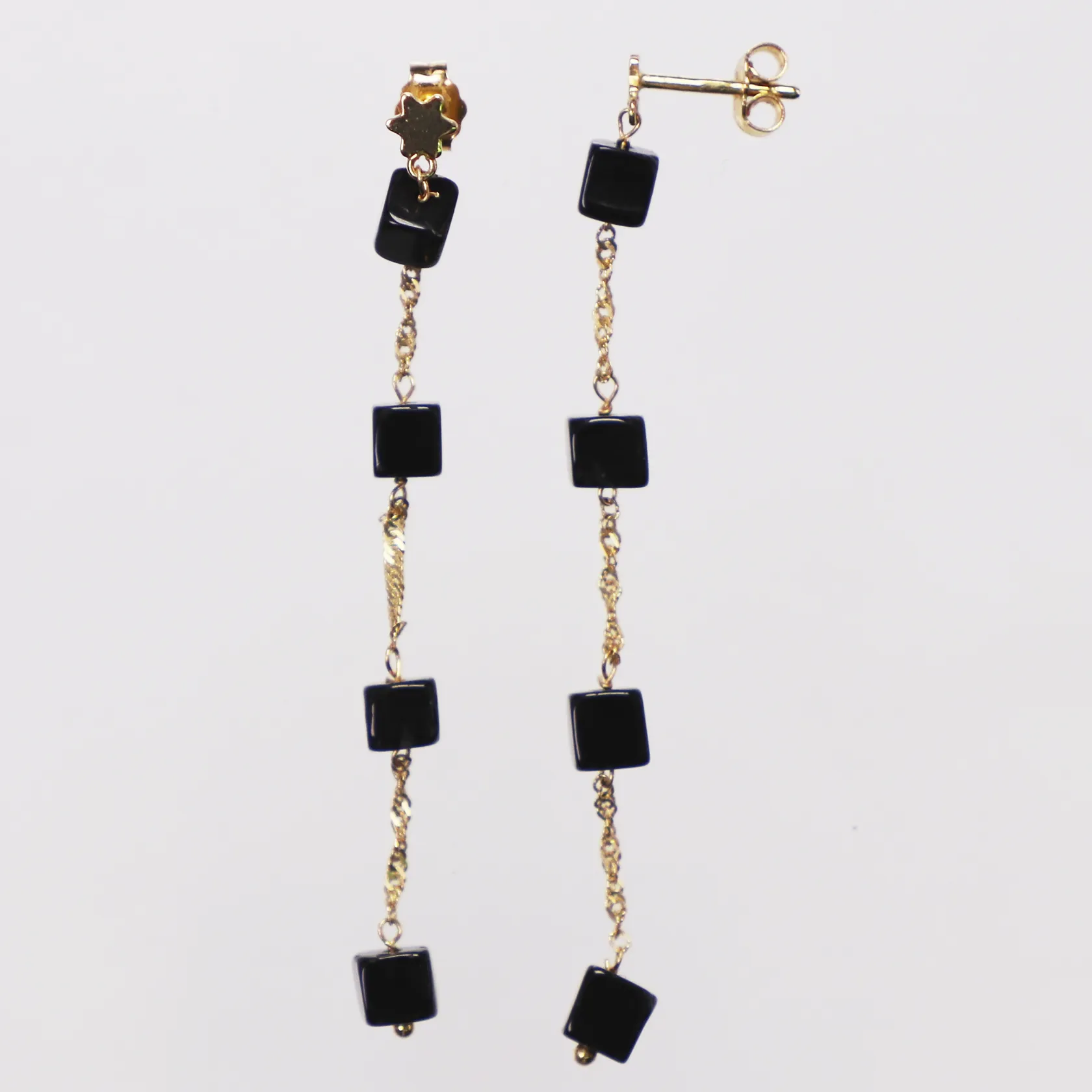 Ett par örhängen med svarta stenar, längd 60mm, bredd 1,2-4mm, 18K Vikt: 2,4 g.