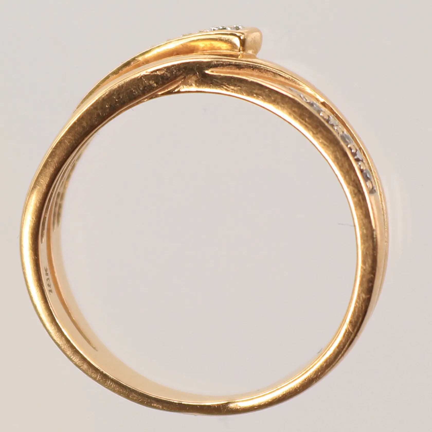 Ring med diamanter totalt ca 15x 0,005ct, stl 19, bredd 1-6mm, 18K Vikt: 6 g.