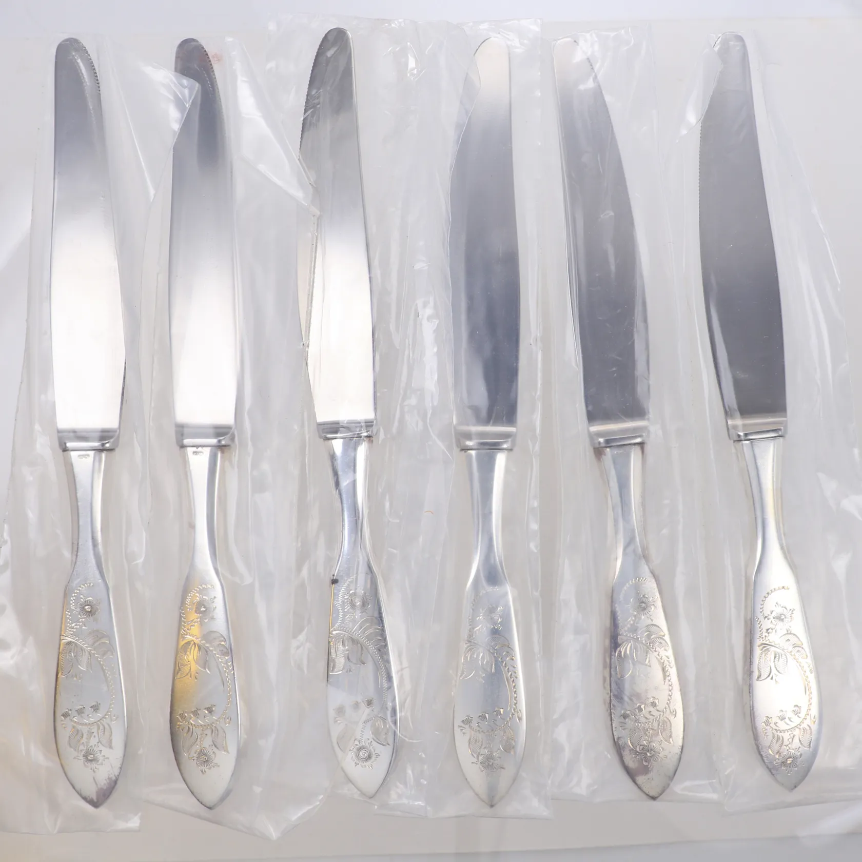 6 knivar modell Tornedal, rostfria blad, längd 22cm, nyskick, 830/1000 silver. Bruttovikt 519,8g Vikt: 519,8 g.
