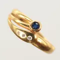 Ring med diamanter totalt ca 0,02ct, samt blå sten, stl 18½, bredd 1-7mm, 18K Vikt: 4 g.
