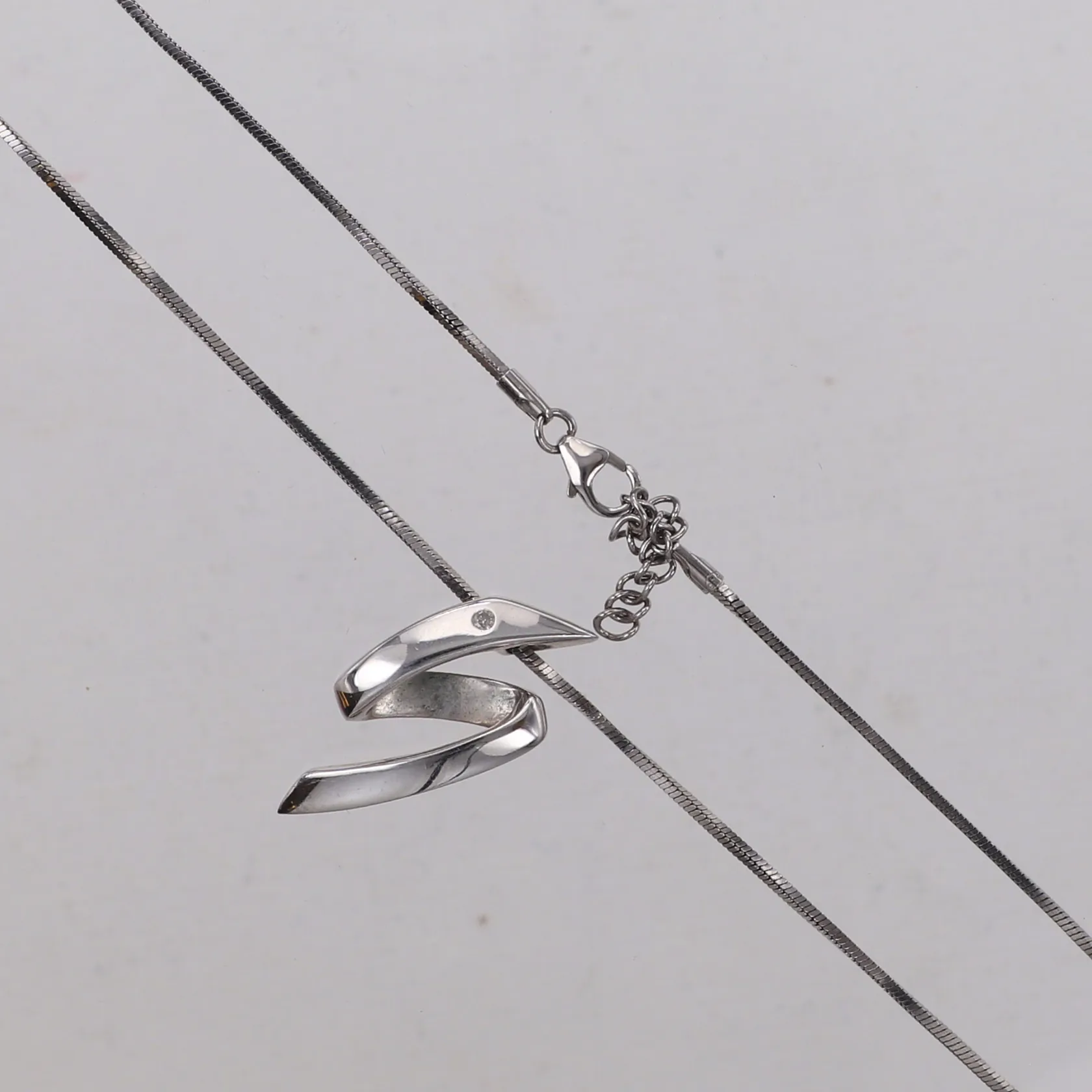 Kedja, längd 43cm, bredd 1,1mm, Hänge med vit sten, längd 30mm, GHA, 925/1000 silver Vikt: 8,1 g.