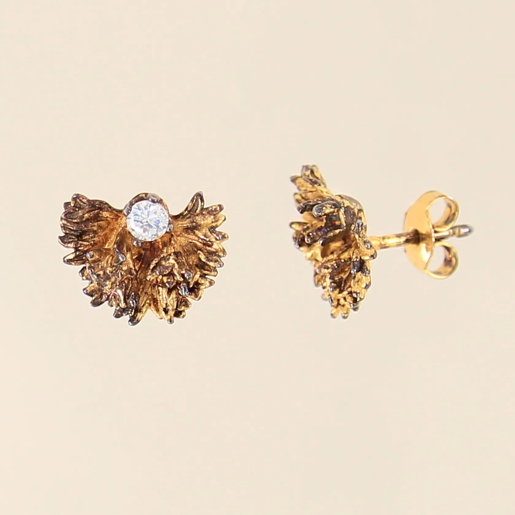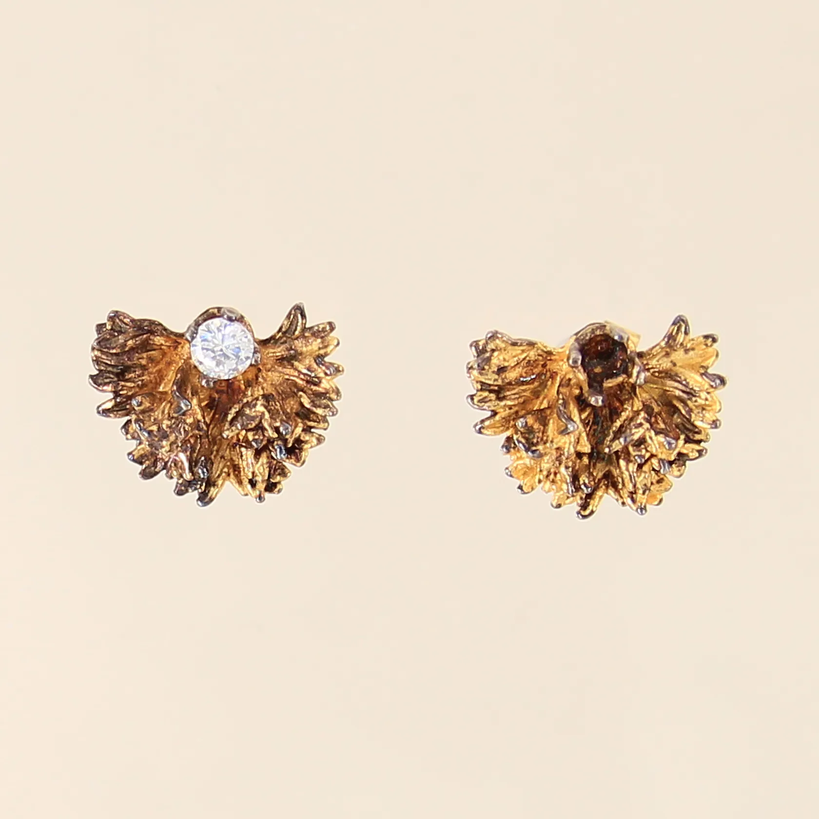 Ett par örhängen med vit sten, Flora Danica, Danmark, 12x9mm, en sten saknas, något svag förgyllning, förgyllt silver 925/1000 Vikt: 2,4 g.