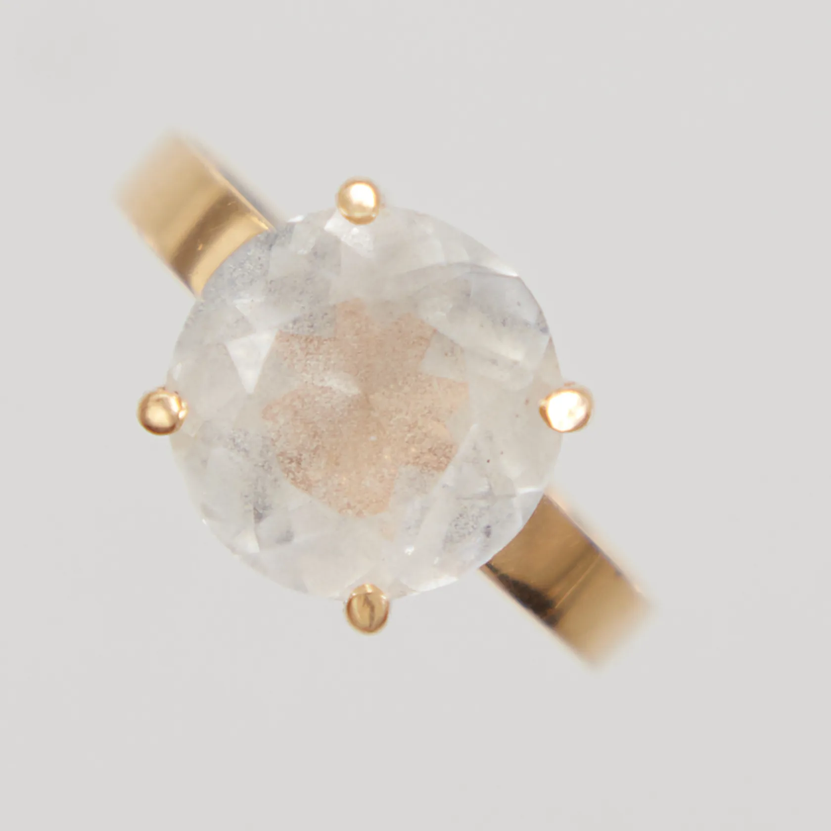 Ring med vit sten, stl 17, bredd 2,8-11,7mm, nagg, Bengt Hallberg, år 1974, 18K Vikt: 2,8 g.