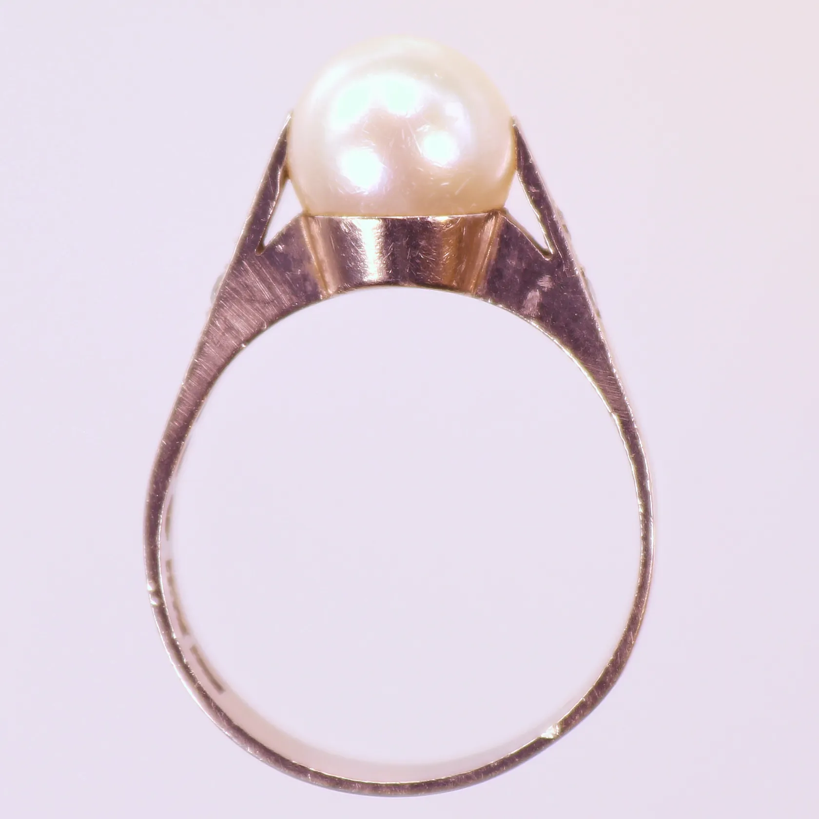 Ring med pärla och 4 diamanter ca 0,03ct totalt, stl 17¾, bredd 4mm, vitguld, repig, 18K, bruttovikt 4,8g Vikt: 4,8 g.