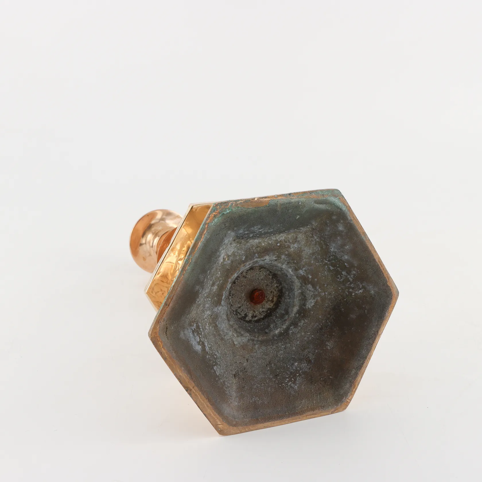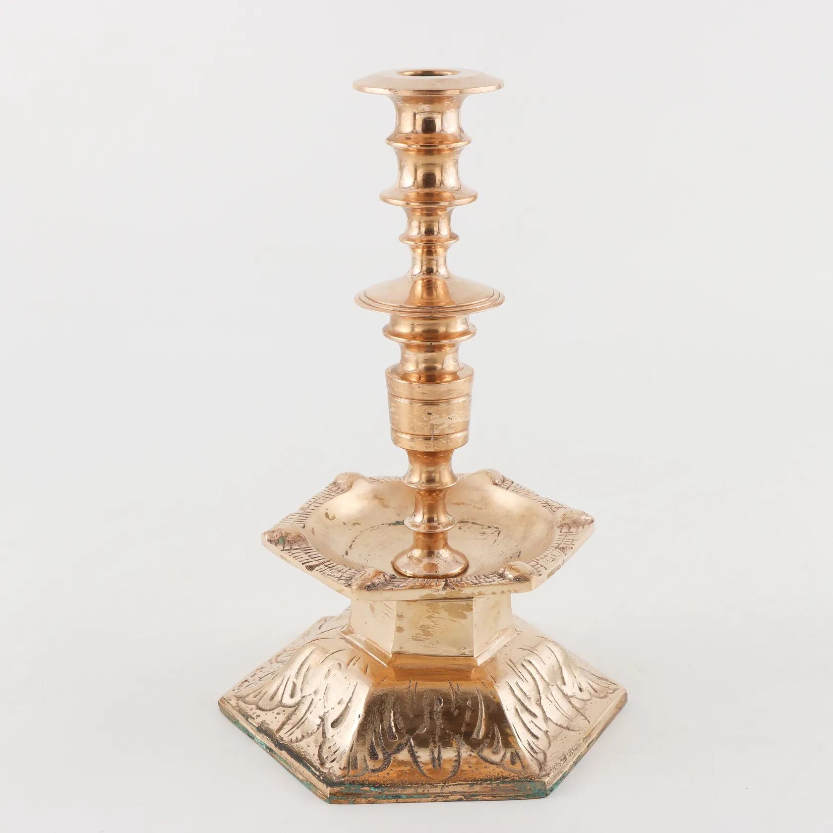 Ljusstake malm, barock stil, höjd: ca 24cm, hexagonal botten, bruksslitage. Skickas med postpaket.