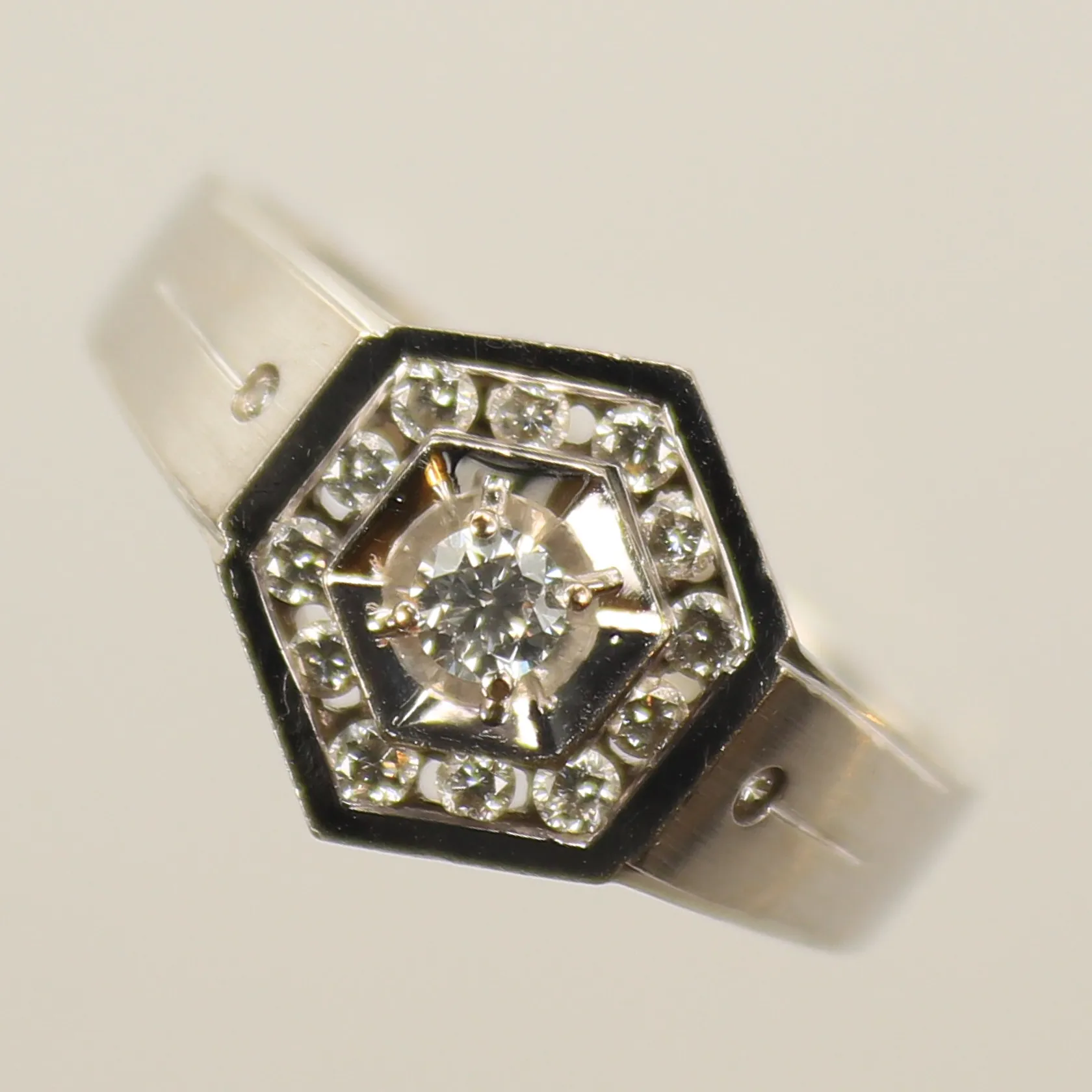 Ring med diamanter totalt ca 0,30ct, stl 20½, bredd 3-11mm, vitguld, 18K Vikt: 6,4 g.
