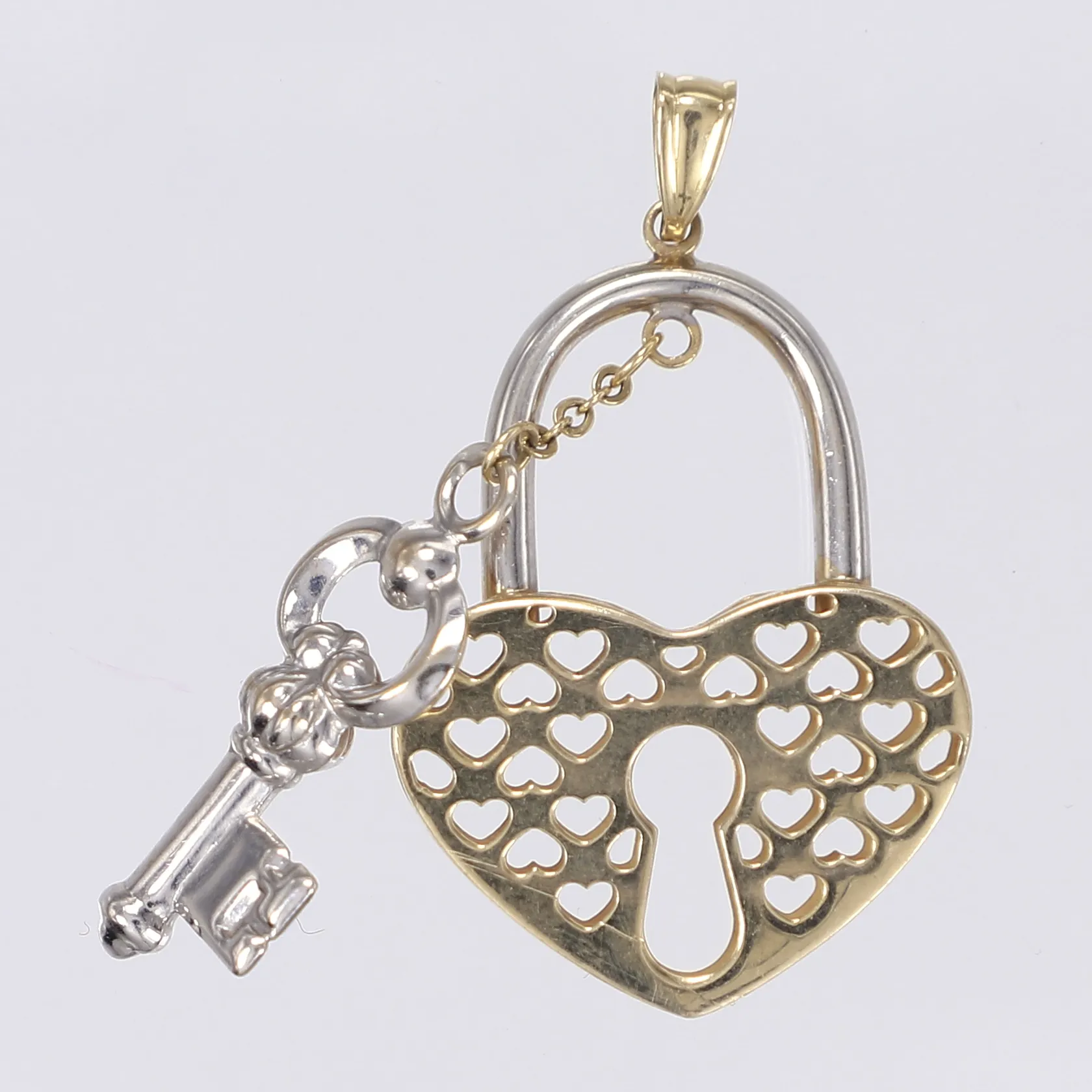 Hänge i form av hänglås med nyckel höjd ca 42mm inkl öglan tvåfärgat 14K Vikt: 3,9 g.