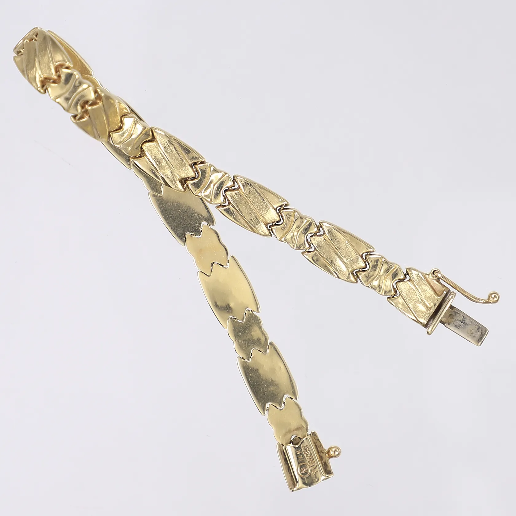 Armband, 18cm, bredd 7,5mm, buckligt, 14K Vikt: 7,5 g.