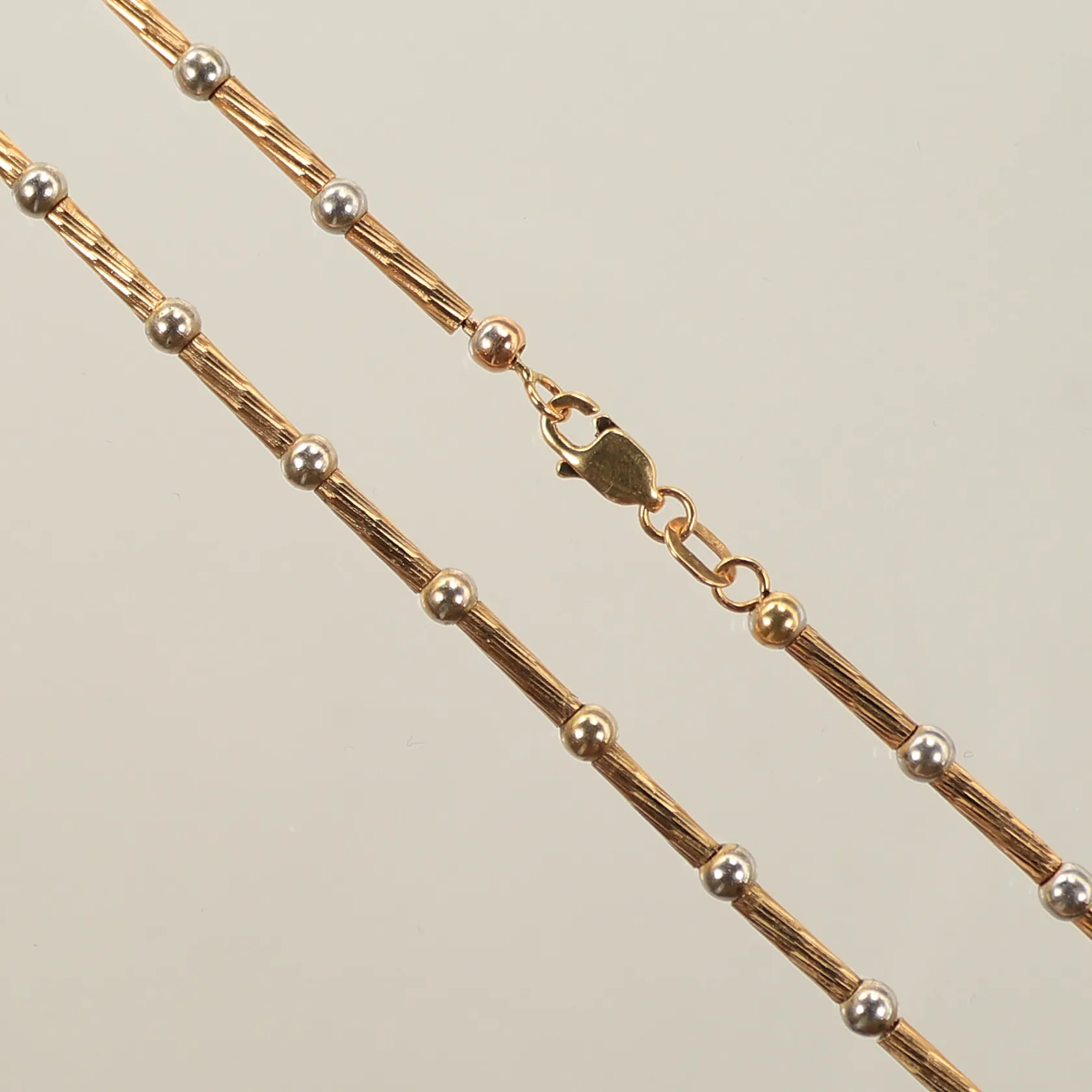Halskedja rödguld/vitguld, längd 43cm, bredd 2mm, 18K Vikt: 10,3 g.