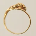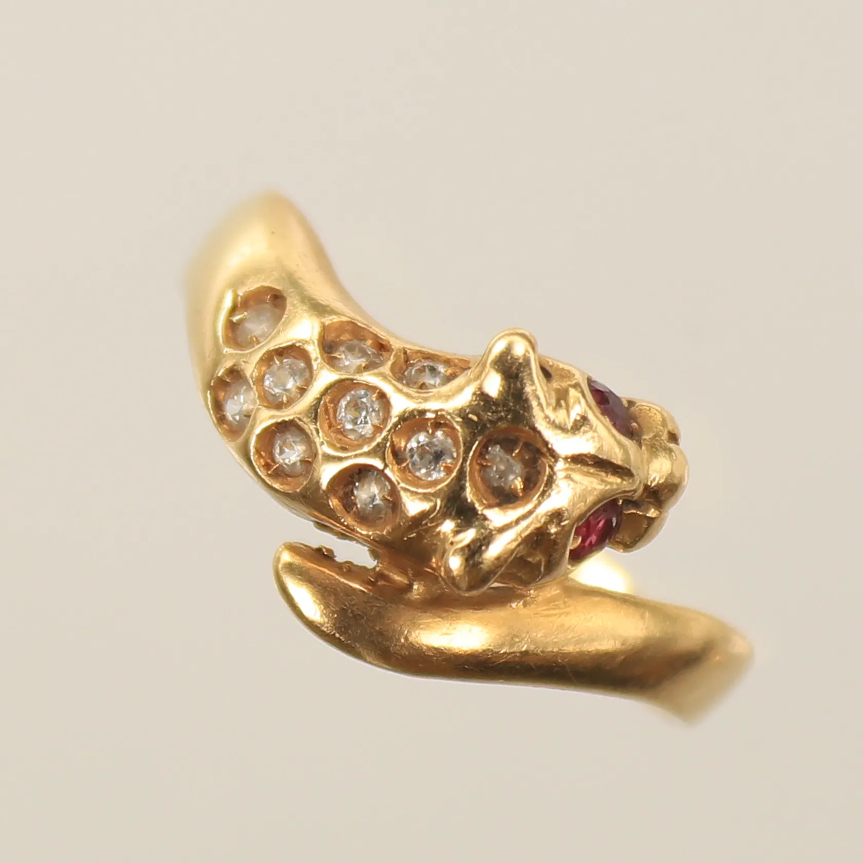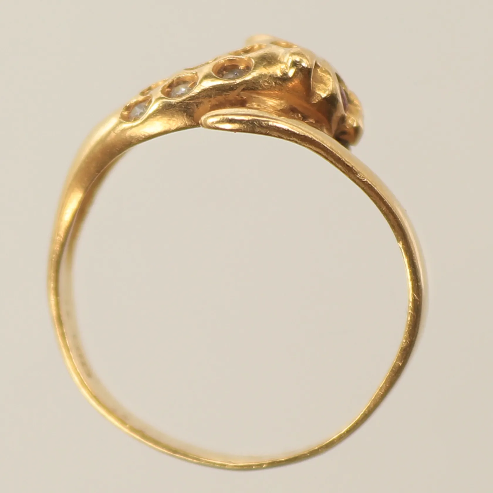 Ring med röda och vita stenar, stl 18¼, bredd 3-12mm, sliten, 18K, 4,5g Vikt: 4,5 g.