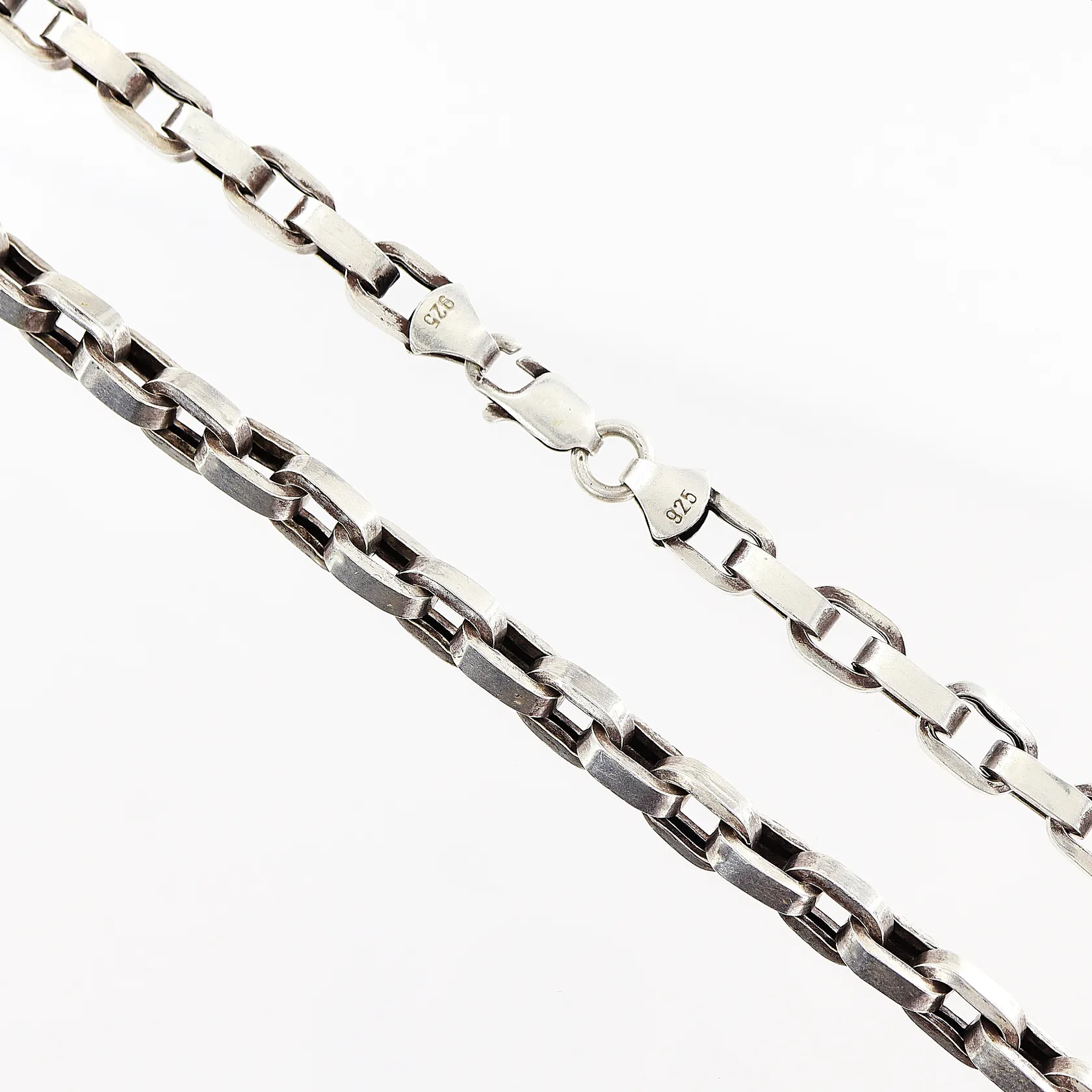 Kedja ankarmodell 53,5cm, bredd 6mm, ihålig, smärre tilltryckningar/skevheter, silver 925/1000. Vikt: 38,1 g.
