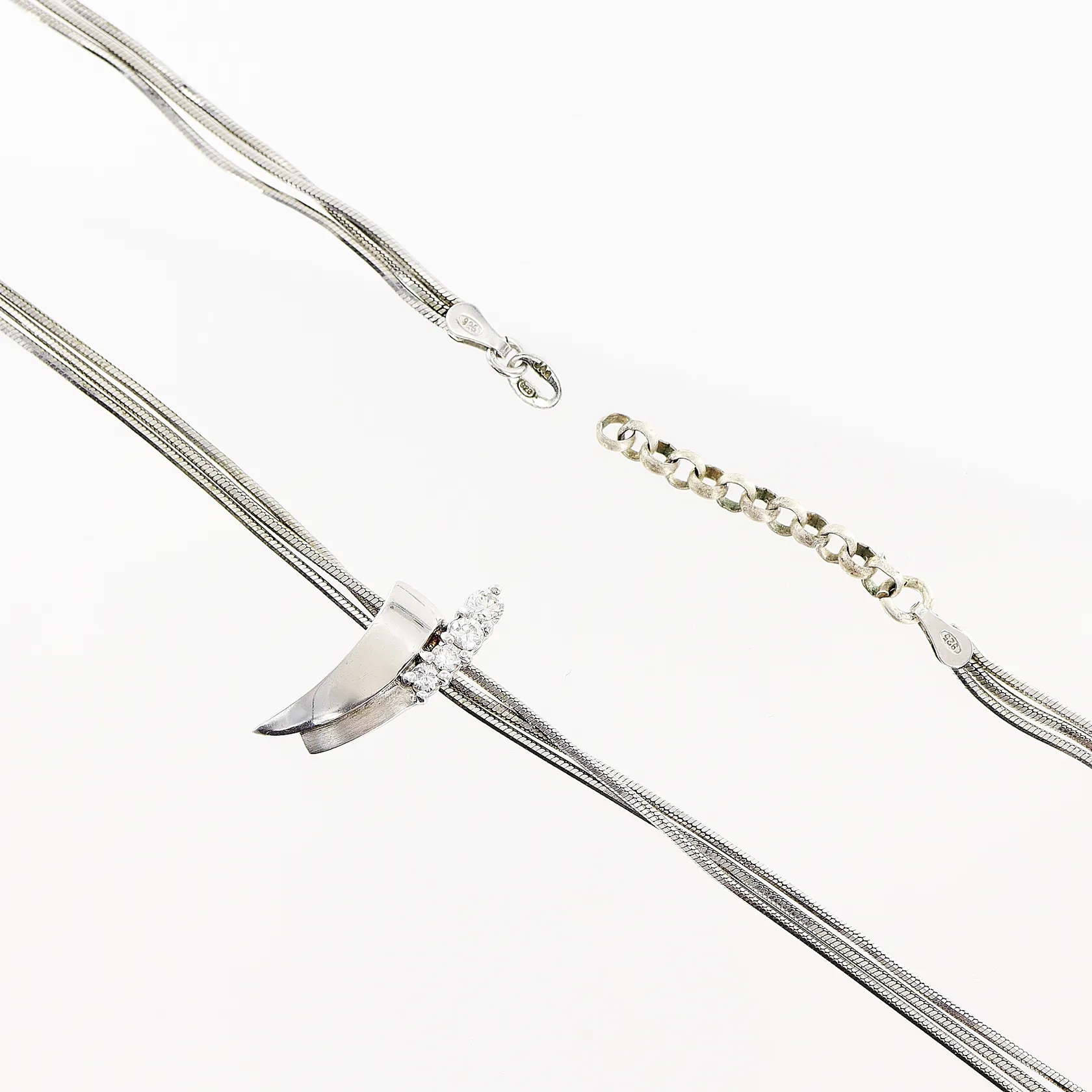 Collier med vita stenar 41-44cm, lås saknas, silver 925/1000. Vikt: 12,4 g.