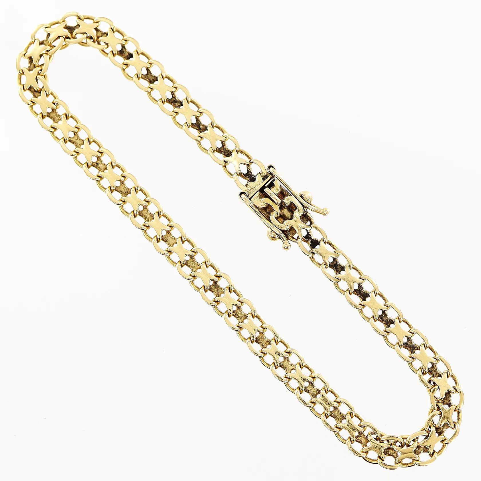 Armband X-länk 20cm, bredd 5mm, 18K Vikt: 9,2 g.