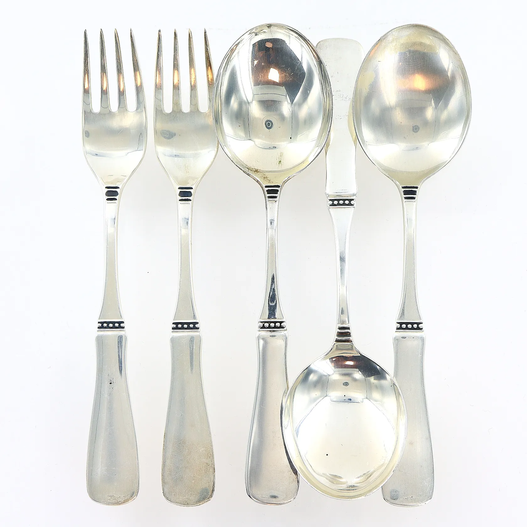 Bordsbestick modell Uppsala, 3 skedar 170mm, 2 gafflar 168mm, MGAB, silver 830/1000. Vikt: 190,4 g.
