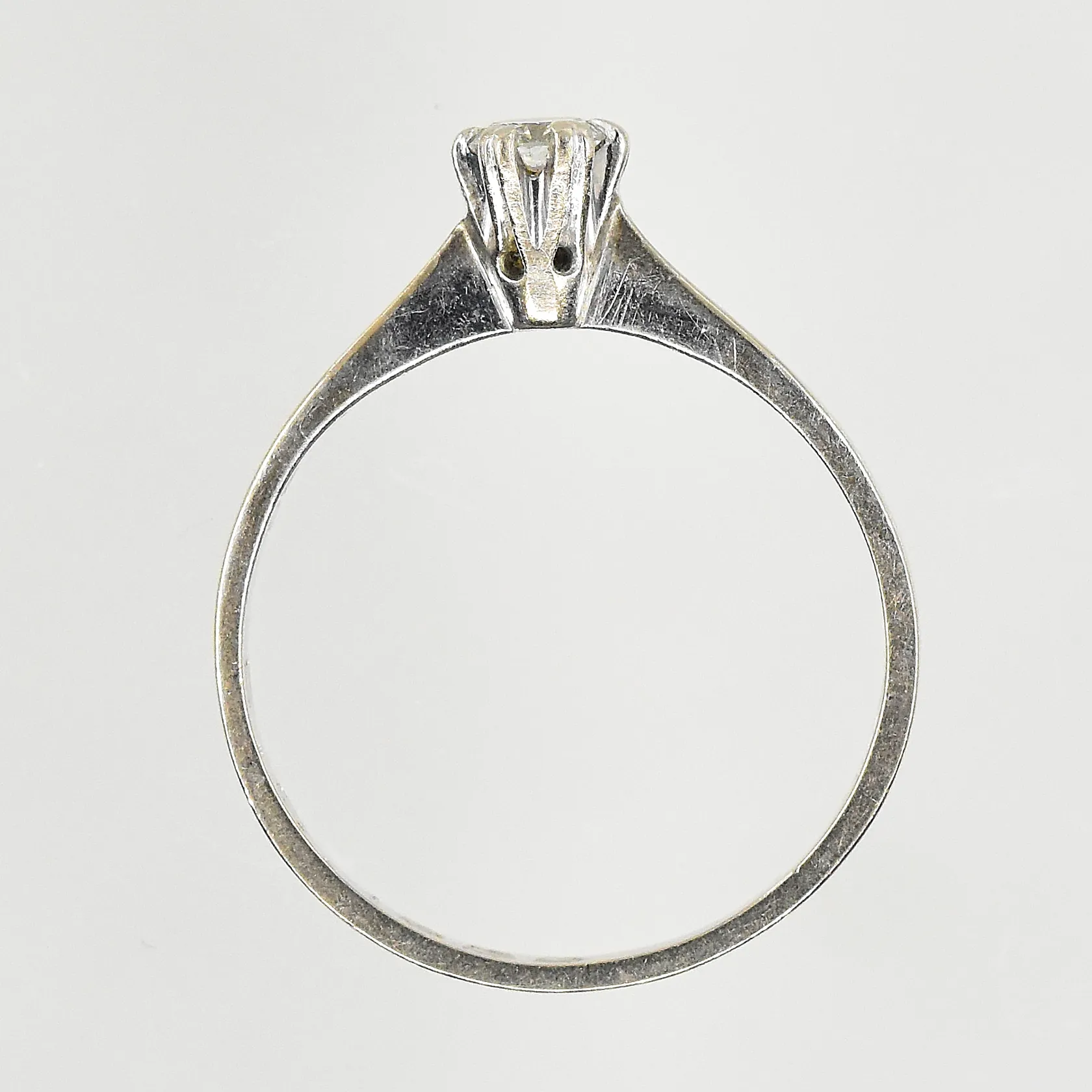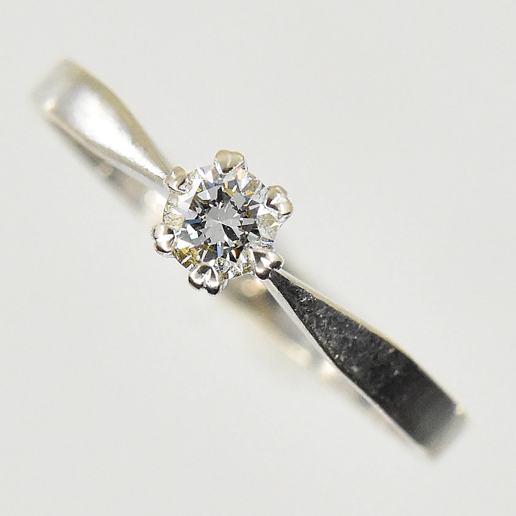 Ring med diamant 0,20ct, stl 17, bredd 2-4 mm, gravyr, vitguld, 18K. Vikt: 2,1 g.