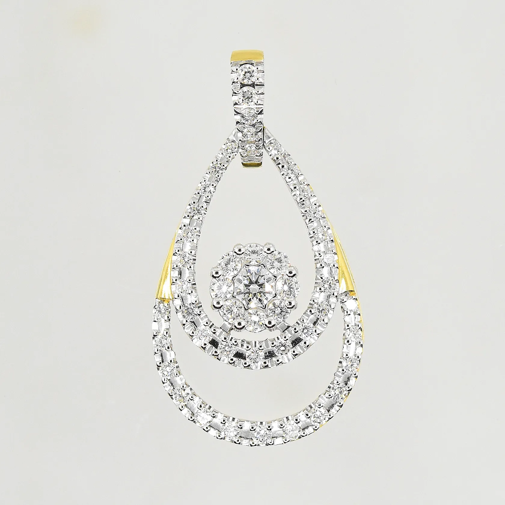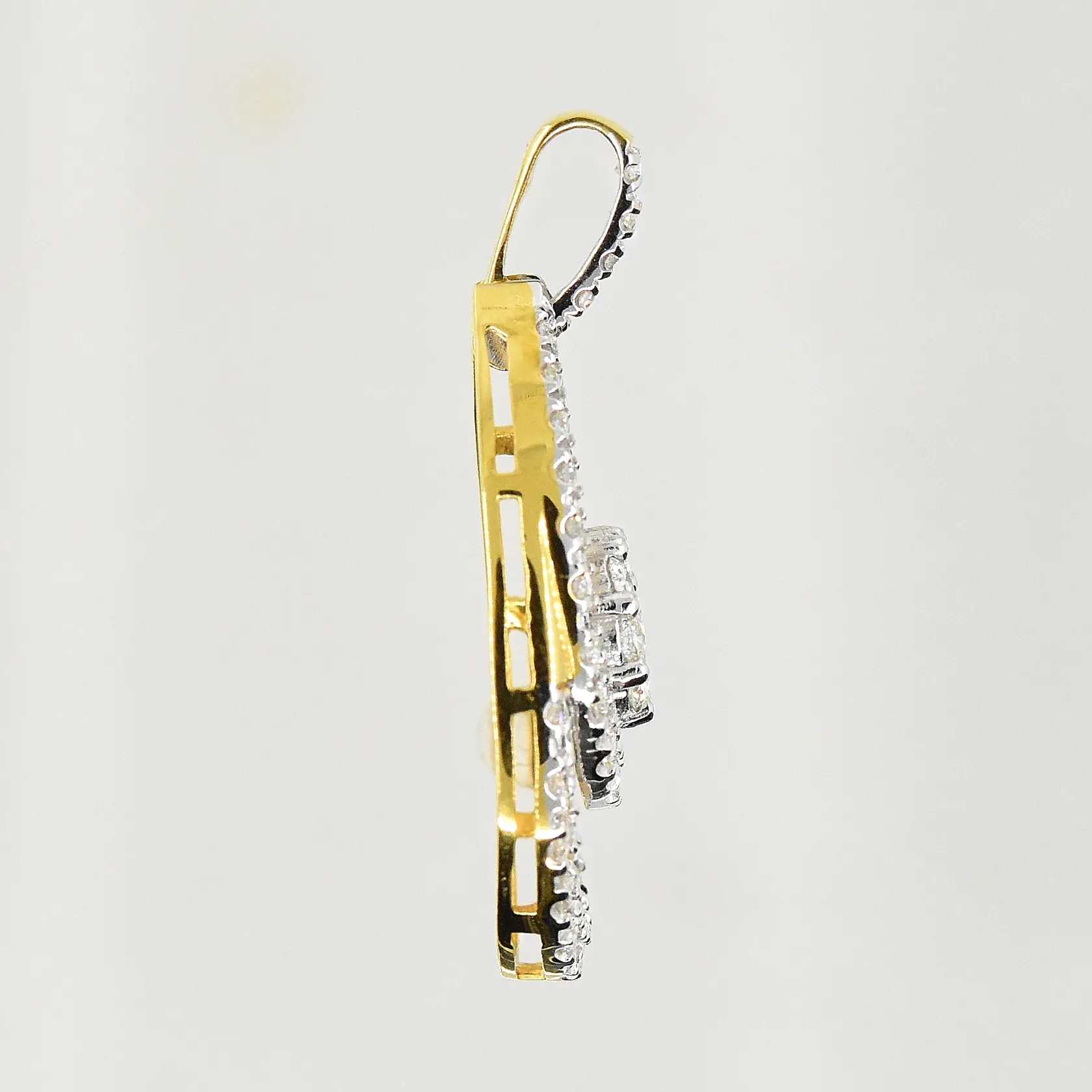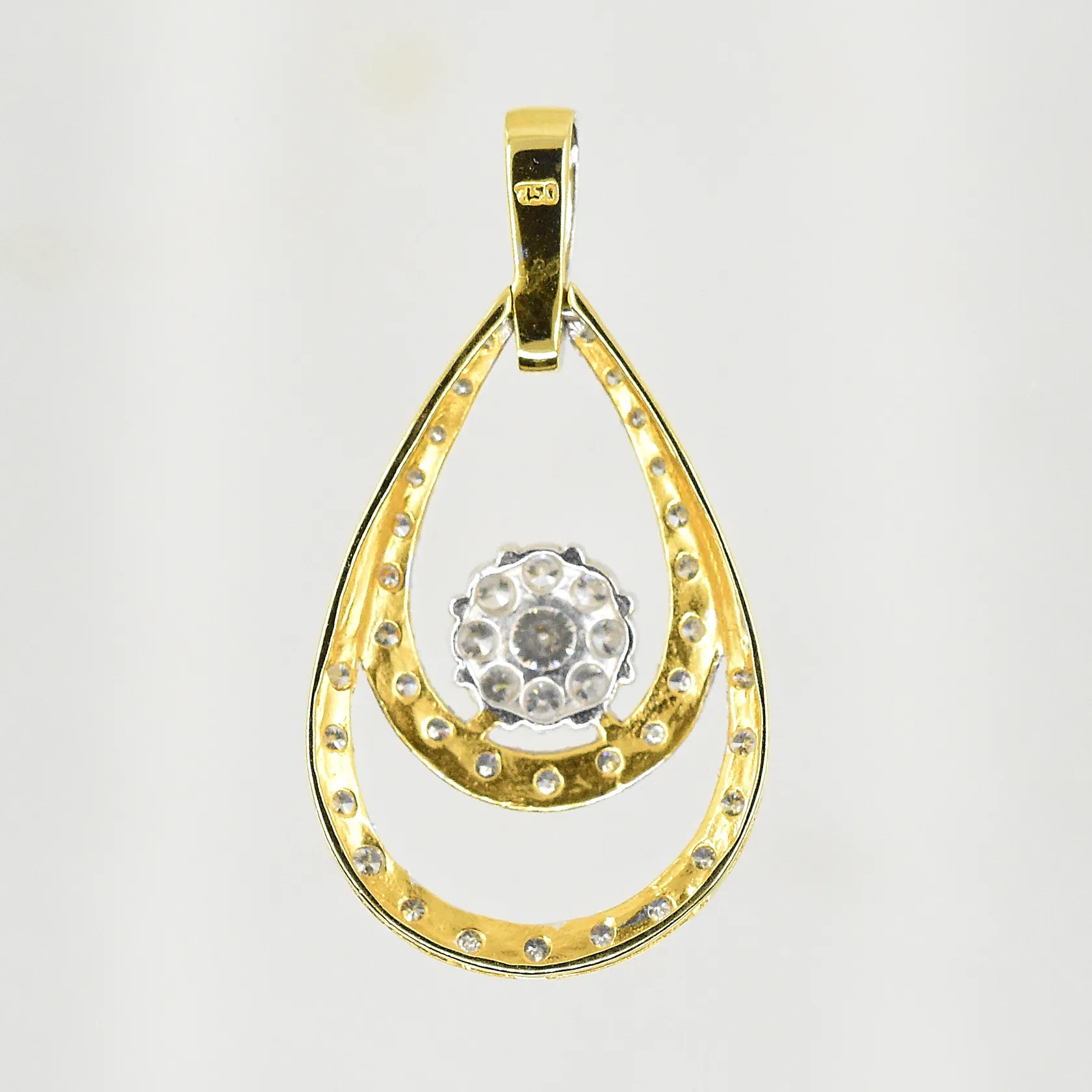 Hänge med diamanter ca 1,0ctv, längd 33 mm, bredd 19 mm, gulguld/vitguld, 18K. Vikt: 4,3 g.