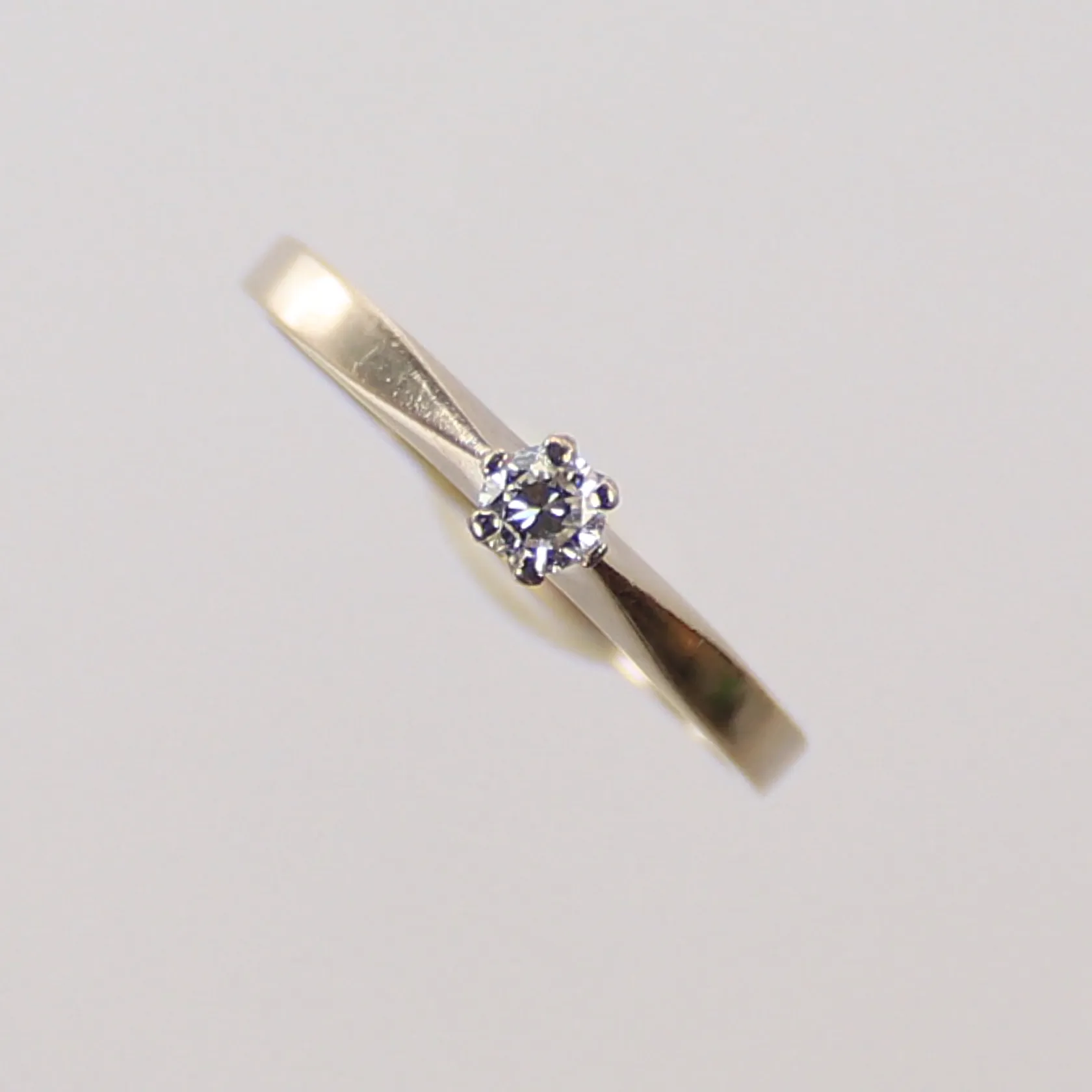 Ring med diamant, 0,11ct enligt gravyr, stl 17¾, bredd 2-3mm, 18K, 2,3g Vikt: 2,3 g.