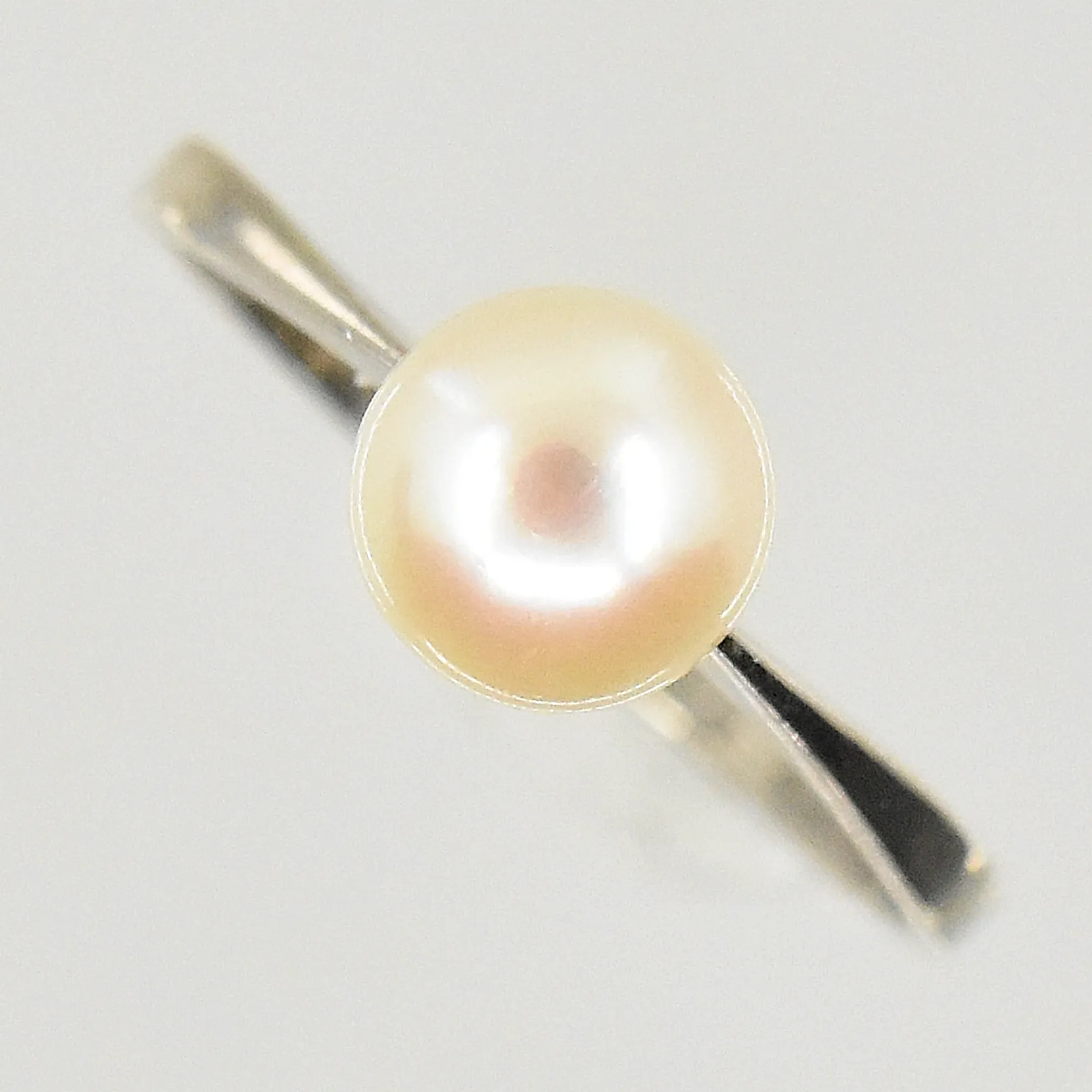 Ring med pärla Ø6 mm, stl 15½, bredd 1 mm, 835/1000 silver. Vikt: 1,4 g.