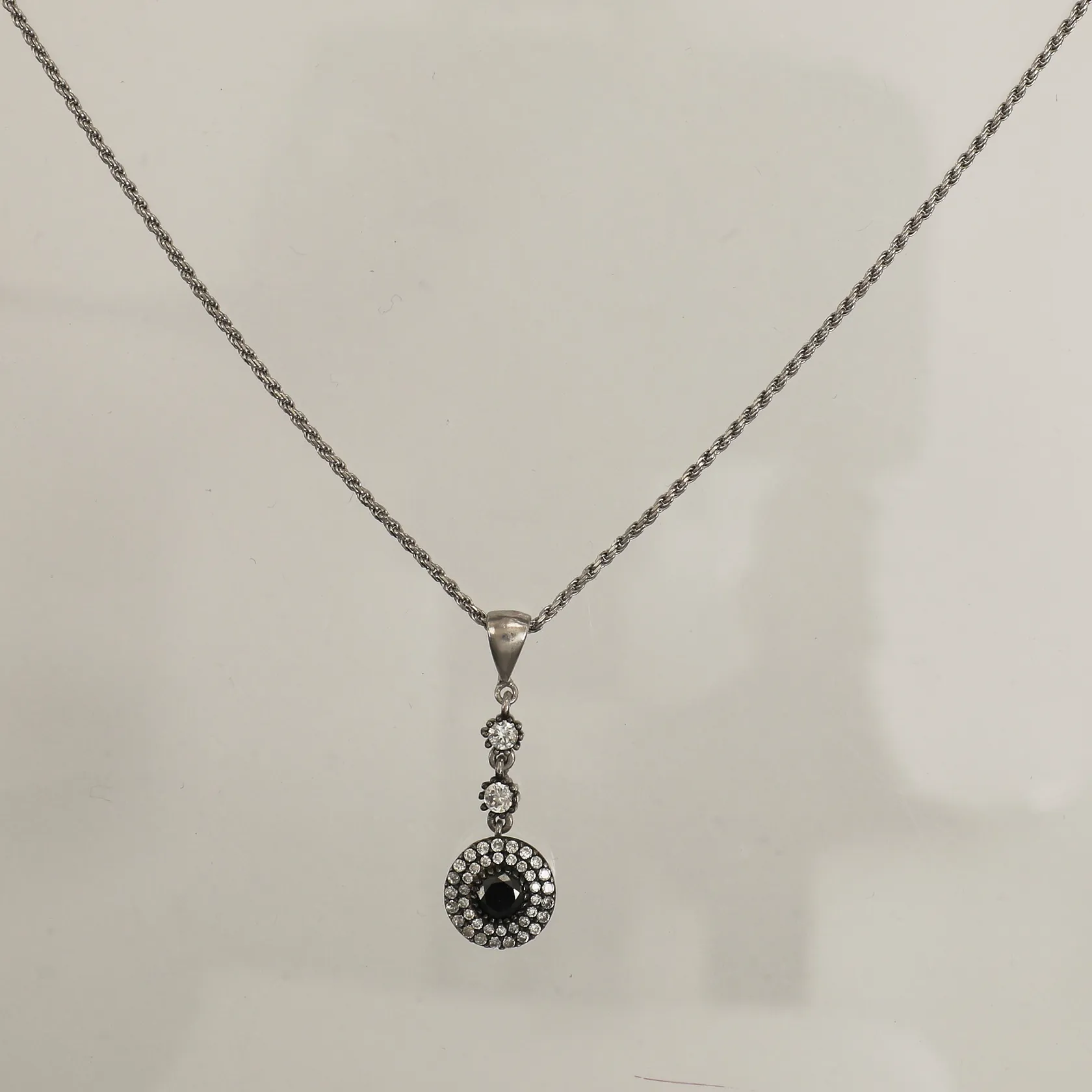 Collier med svart och vita stenar, längd 50cm, bredd 1mm, 925/1000 Vikt: 5,7 g.