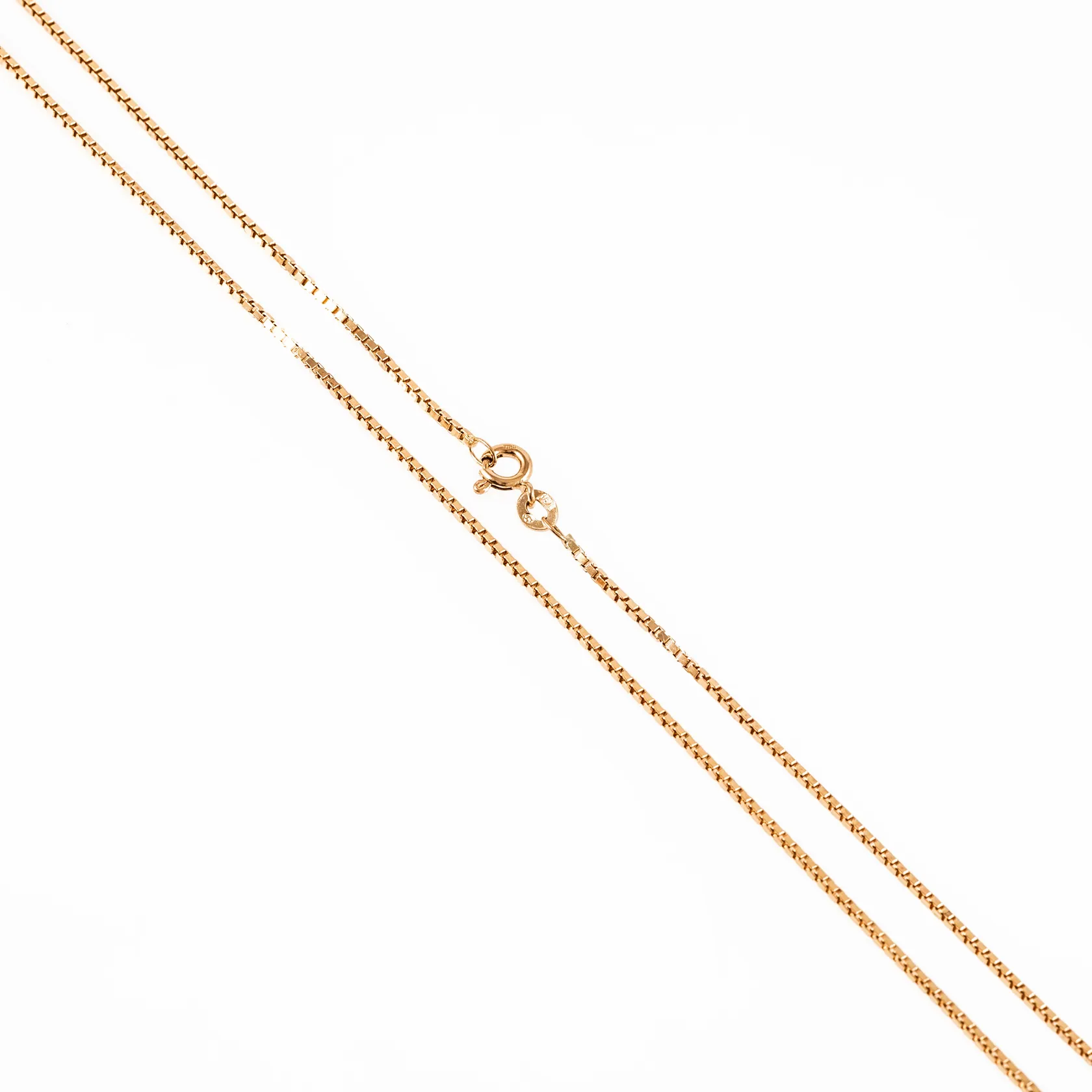 Kedja Venezia i 18K guld. Den är 42 cm lång, 1,3 mm bred och väger 5,5g. Springring. Fint skick. Vikt: 5,5 g.