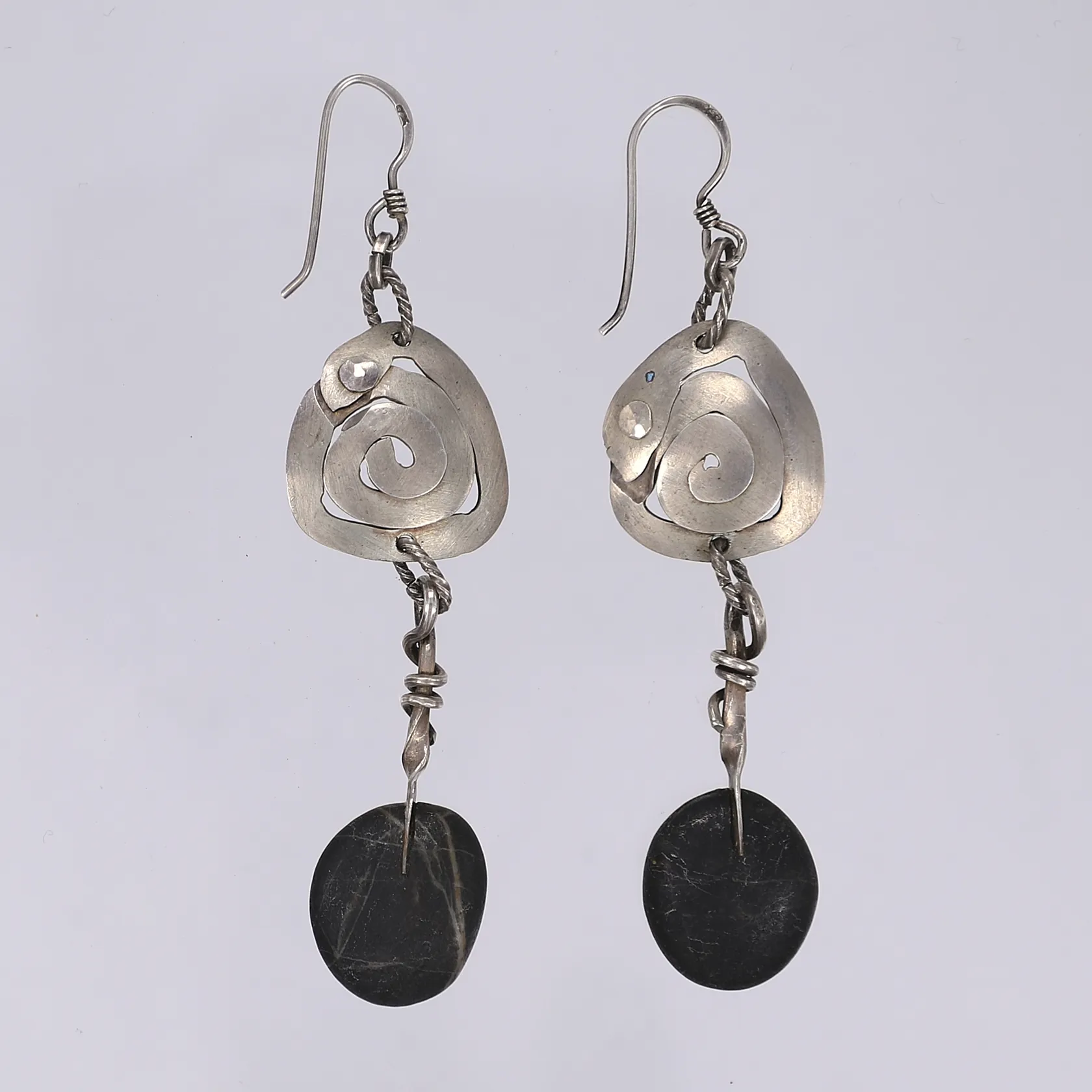 Ett par örhängen med svart sten höjd 65mm silver 925/1000 Vikt: 10,9 g.