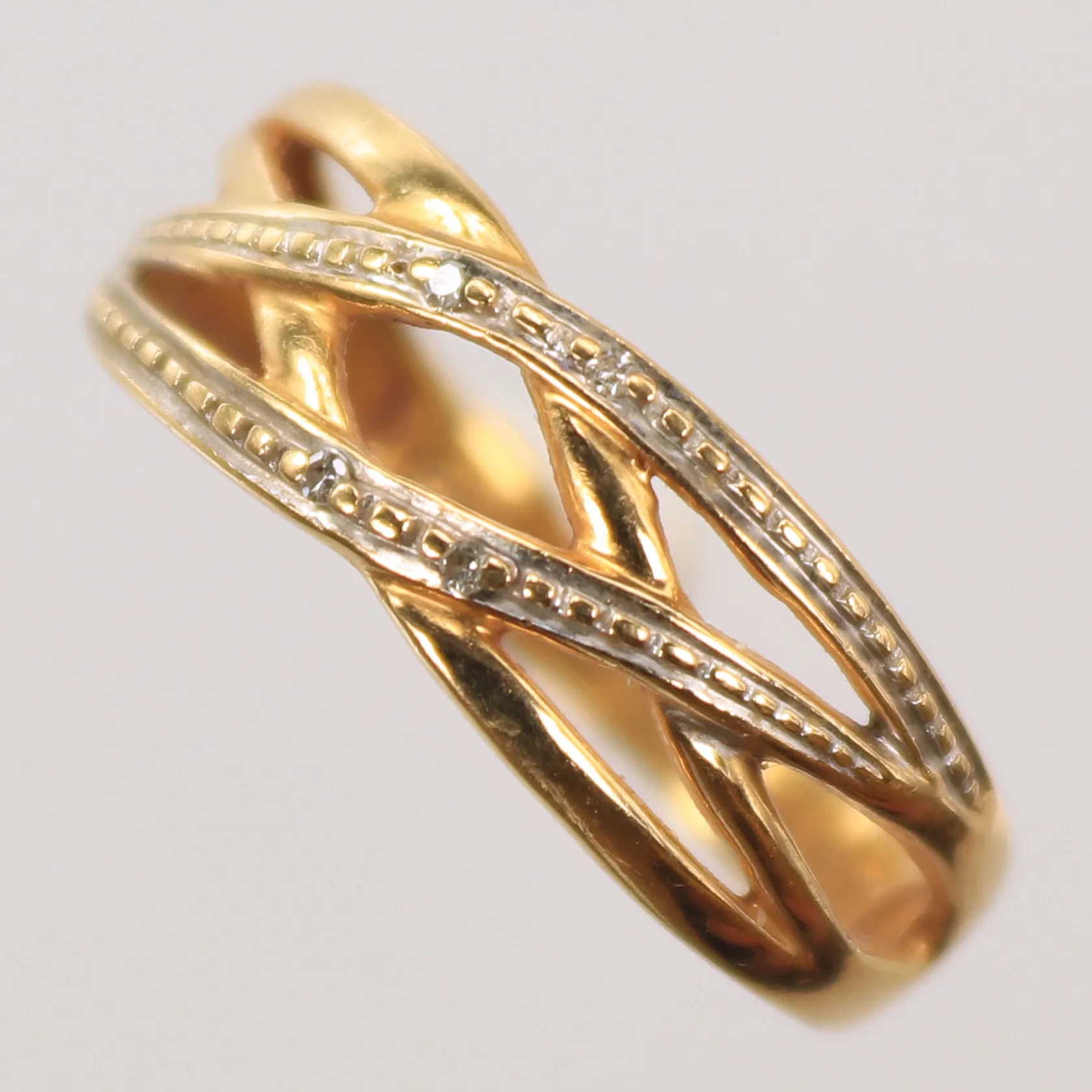 Ring med diamanter totalt 0,02ct enl gravyr,stl 18, bredd 2-6mm, 18K Vikt: 2,6 g.