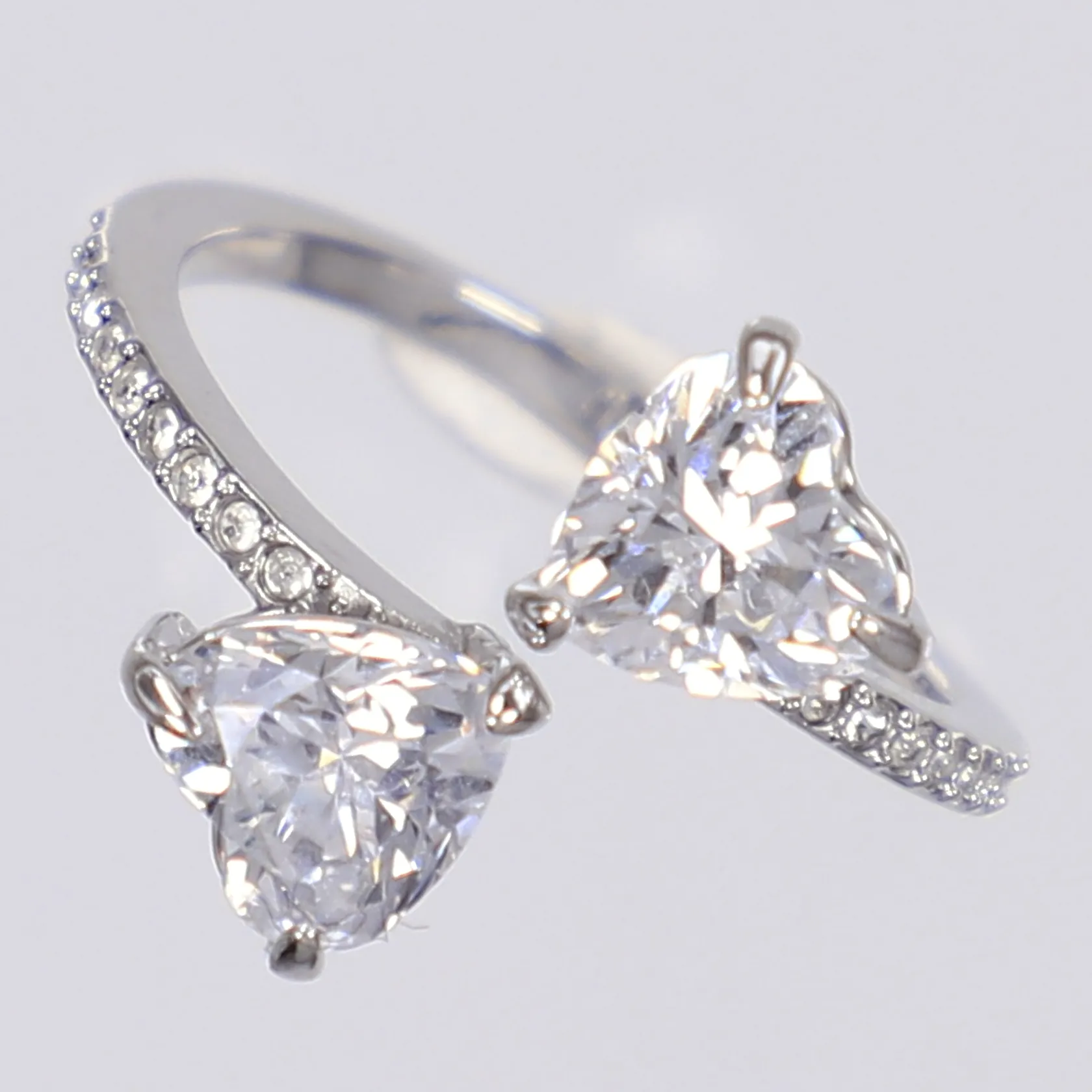 Ring med vita stenar Swarowski stl 18 bredd 15mm oädel troligen försilvrad metall