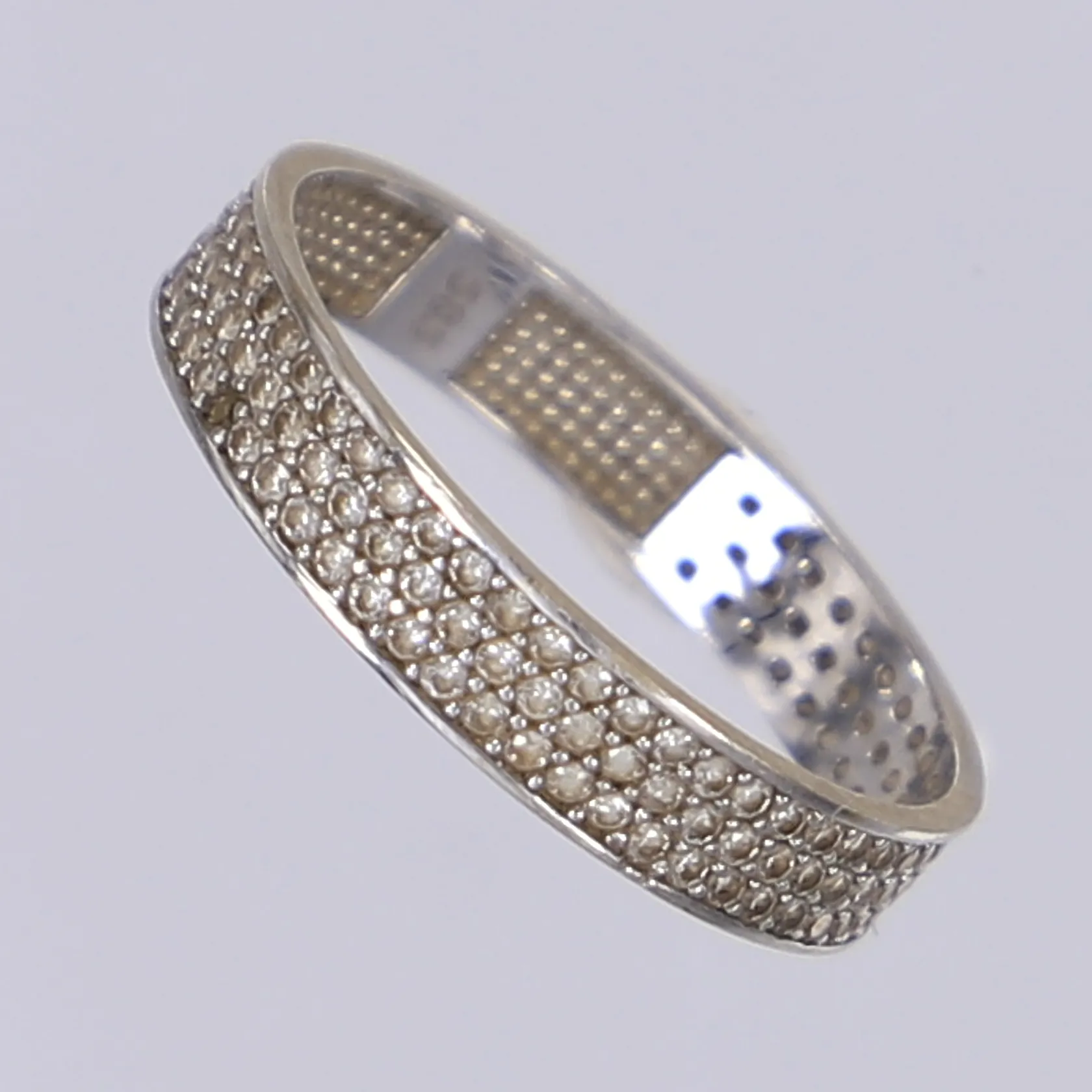 Ring med vita stenar stl 18 bredd 4mm vitguld defekt saknar en sten 14K Vikt: 1,6 g.