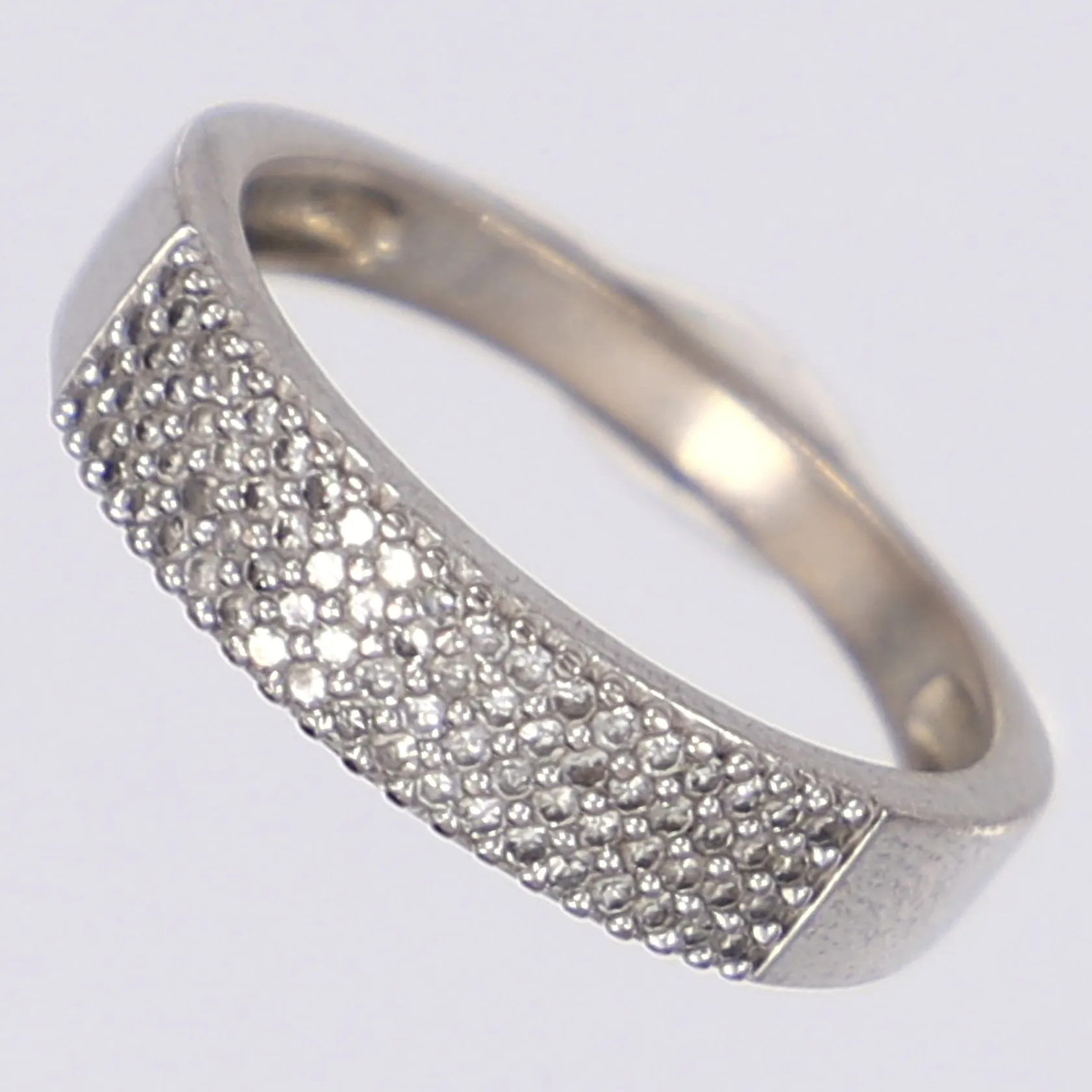 Ring med diamanter 76x ca 0,001ct stl 17, bredd 2-5mm vitguld 18K Vikt: 3,2 g.