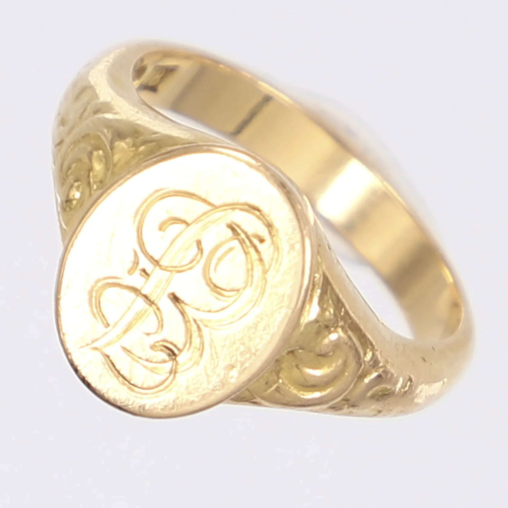 Klackring med monogram stl 17¾ bredd 3-13mm repig 18K Vikt: 6,2 g.
