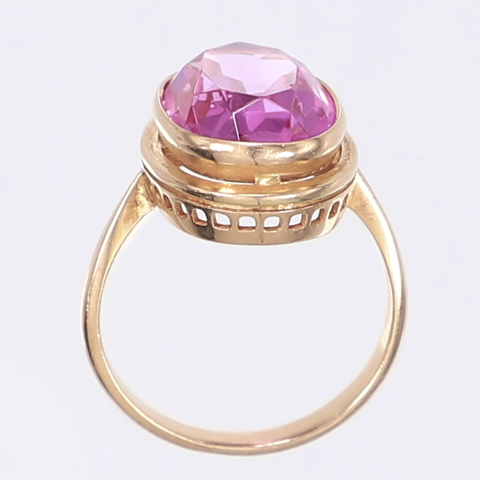 Ring med rosa sten, stl 18½, 14K. Bruttovikt 6,7g Vikt: 6,7 g.
