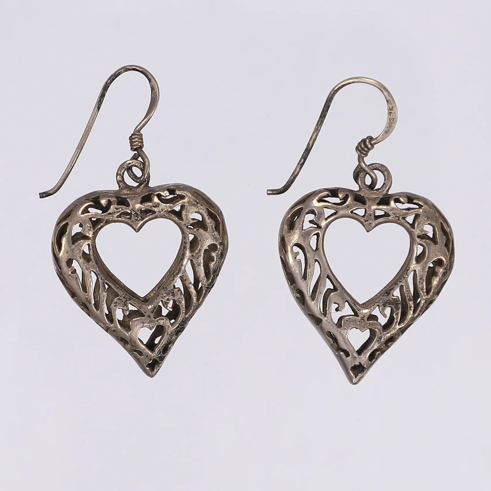 Ett par örhängen i form av hjärtan höjd 30mm inkl öglan oputsade silver 925/1000 Vikt: 10,3 g.