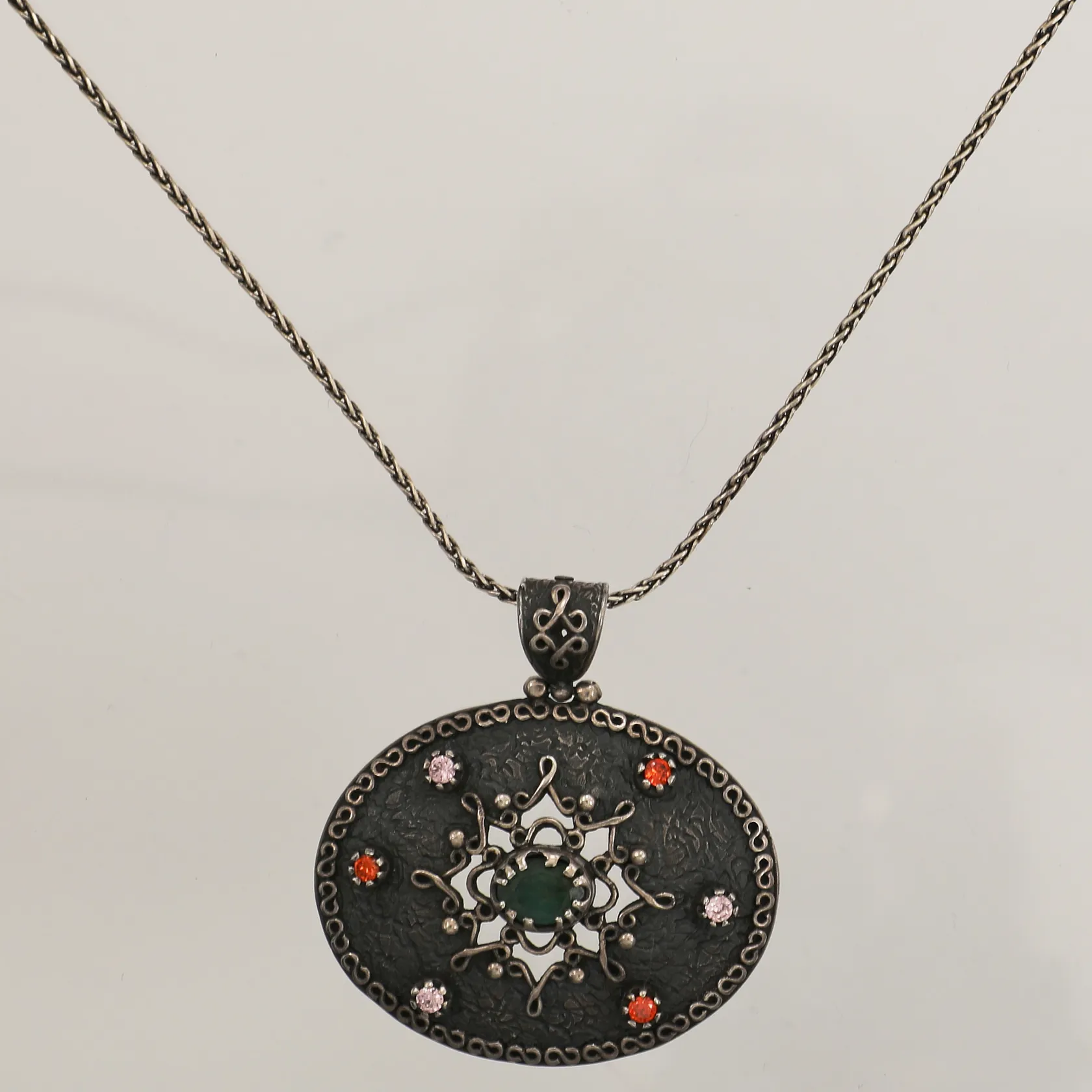 Kedja med hänge med nefrit och zirkoner