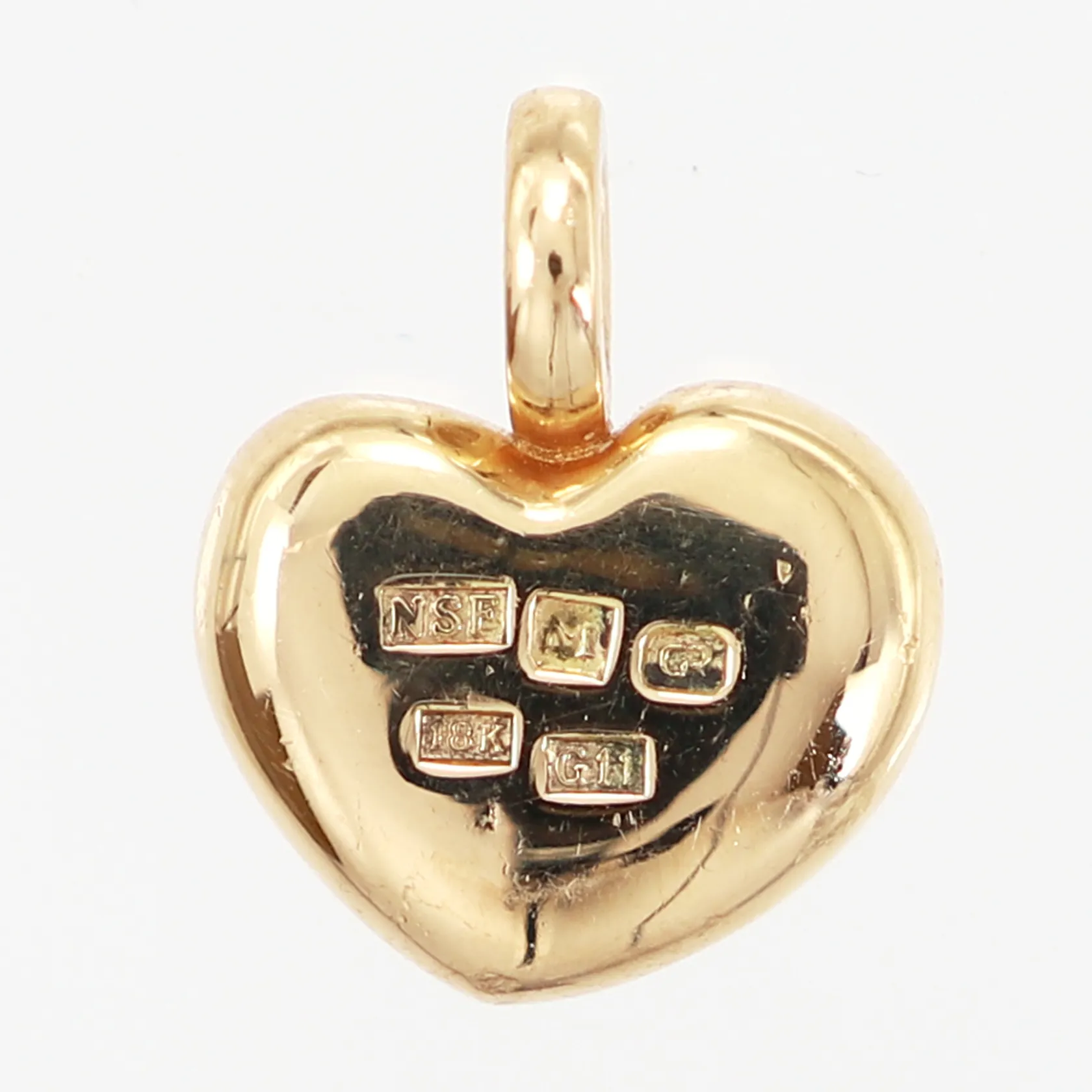 Hänge, hjärta, höjd 19mm inkl. ögla, bredd 15mm, David Butler, Malmö, 2005, små nagg på sidorna, 18K Vikt: 10,8 g.