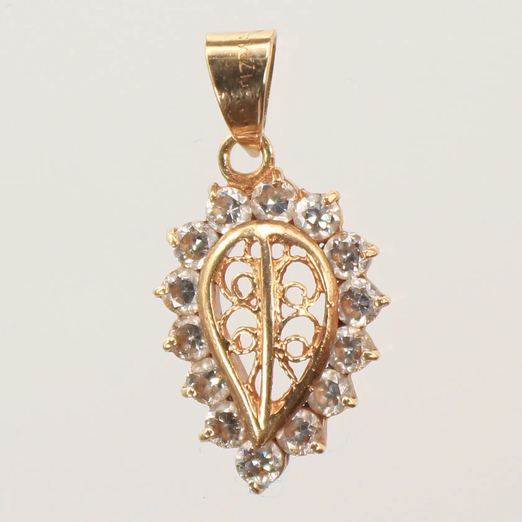 Hänge med vita stenar, 25x12mm,14K Vikt: 2,1 g.