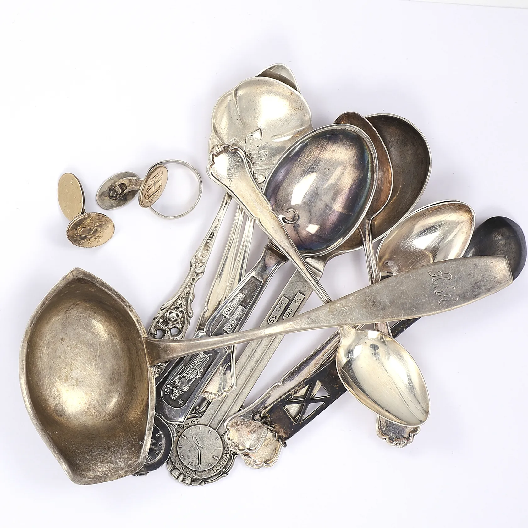 Diverse silver bl a bestick dopskedar och ring silver gravyrer 830/1000 Vikt: 208 g.