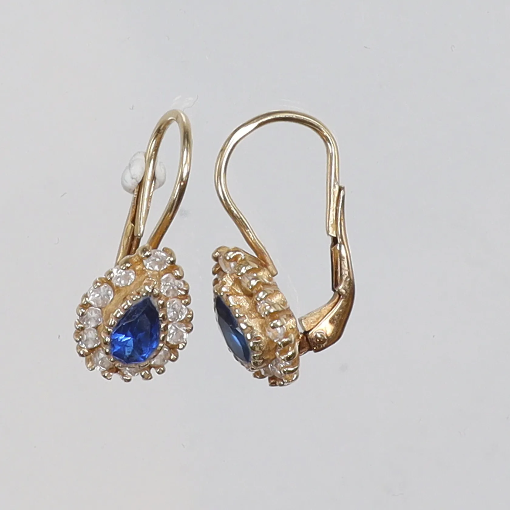 Ett par Örhängen med blåa samt vita stenar 8x19mm 14K Vikt: 3,3 g.