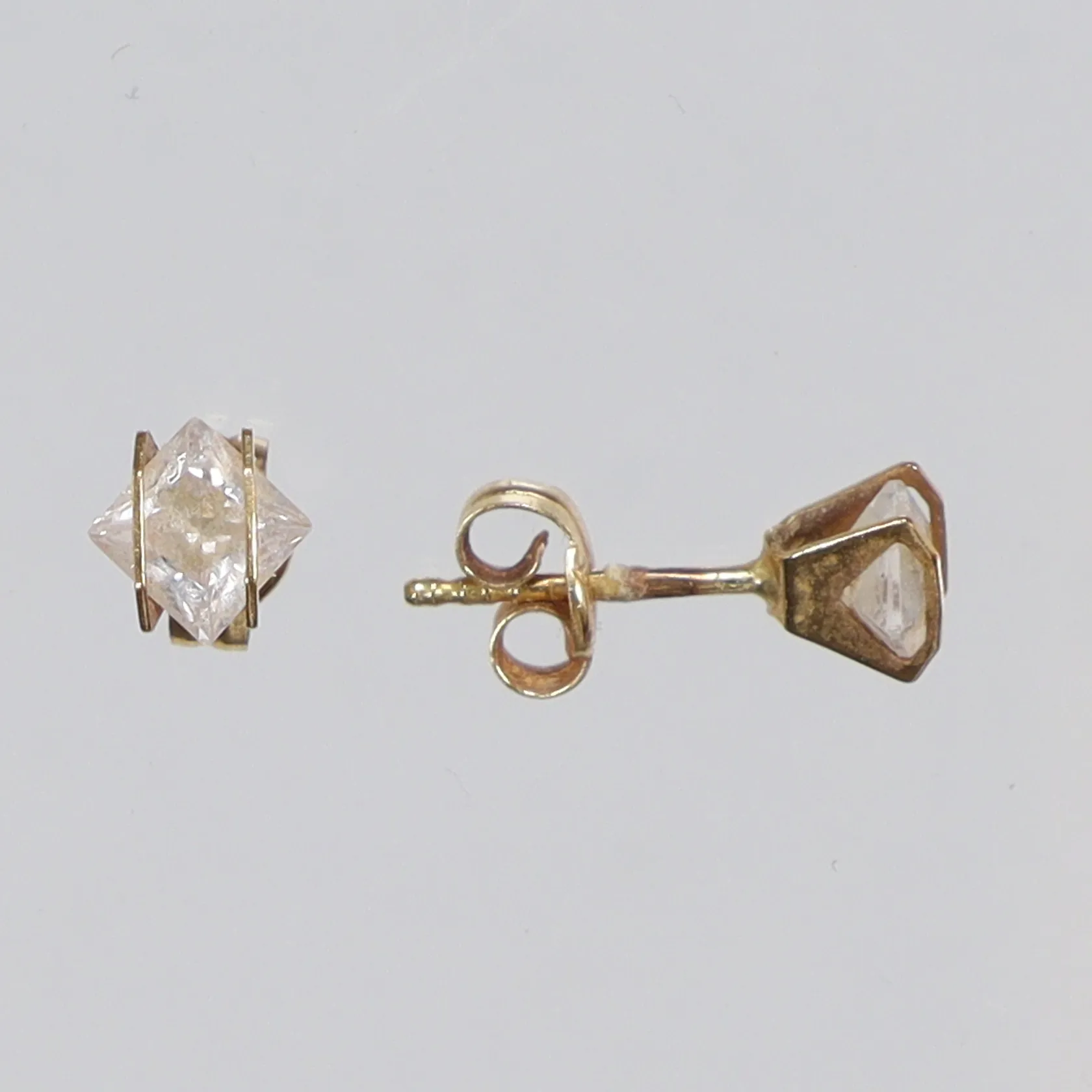 Ett par Örhängen med vita stenar 4x5mm 18K Vikt: 0,8 g.