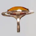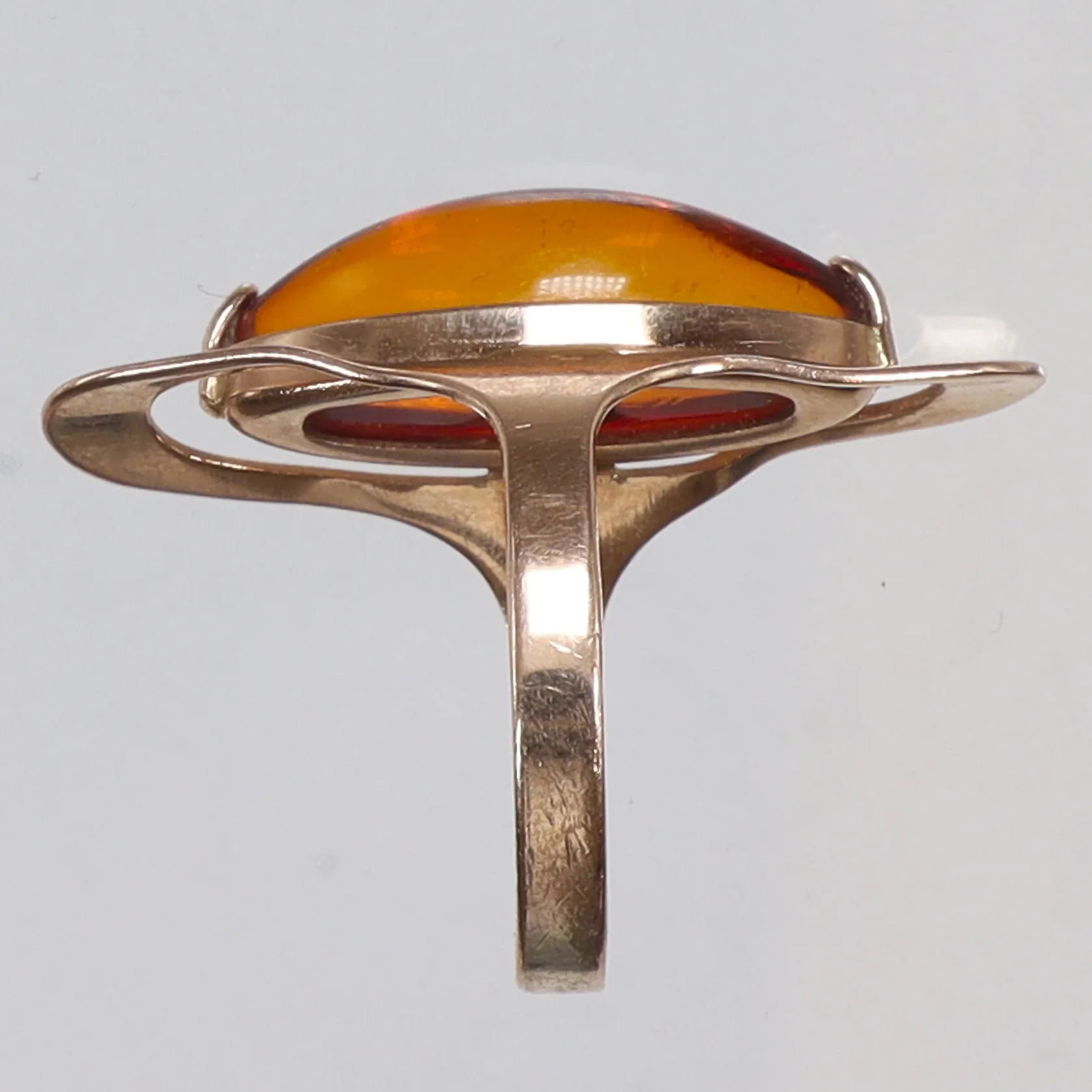 Ring med cabochonslipad bärnsten stl 18½ 3-31mm sovjetiska stämplar 1970-tal 14K Vikt: 3,9 g.