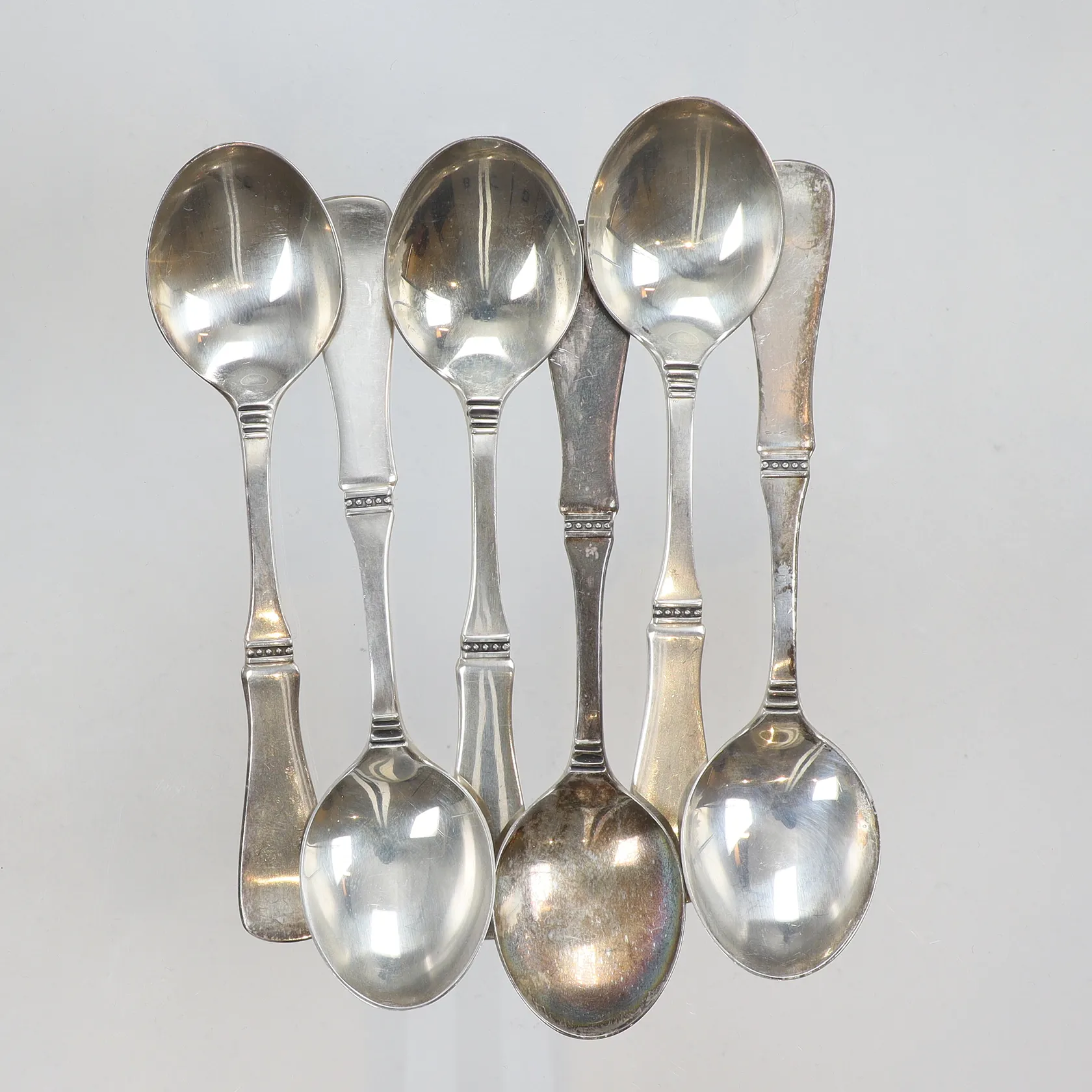 6 kaffeskedar modell Uppsala längd 11cm, silver, 830/1000 Vikt: 80,5 g.
