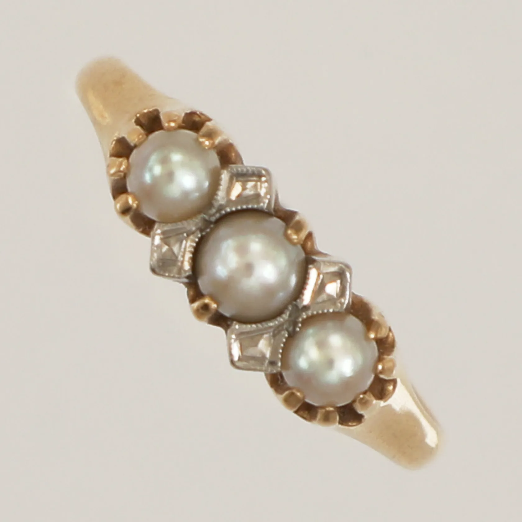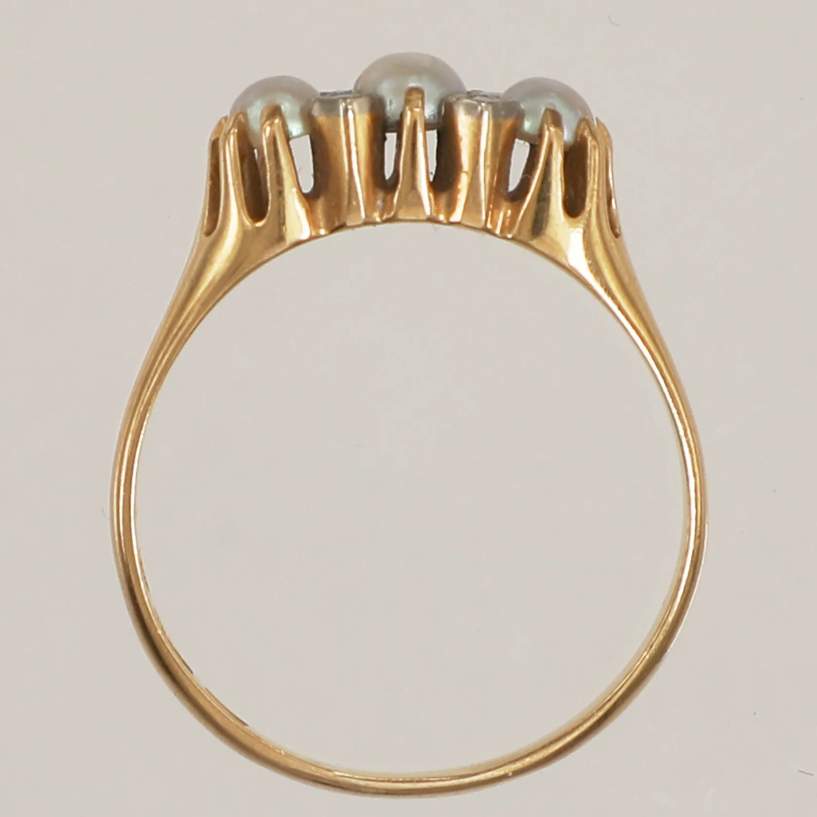 Ring med pärlor, stl 18¼, bredd 5,7mm, 18K Vikt: 3,4 g.