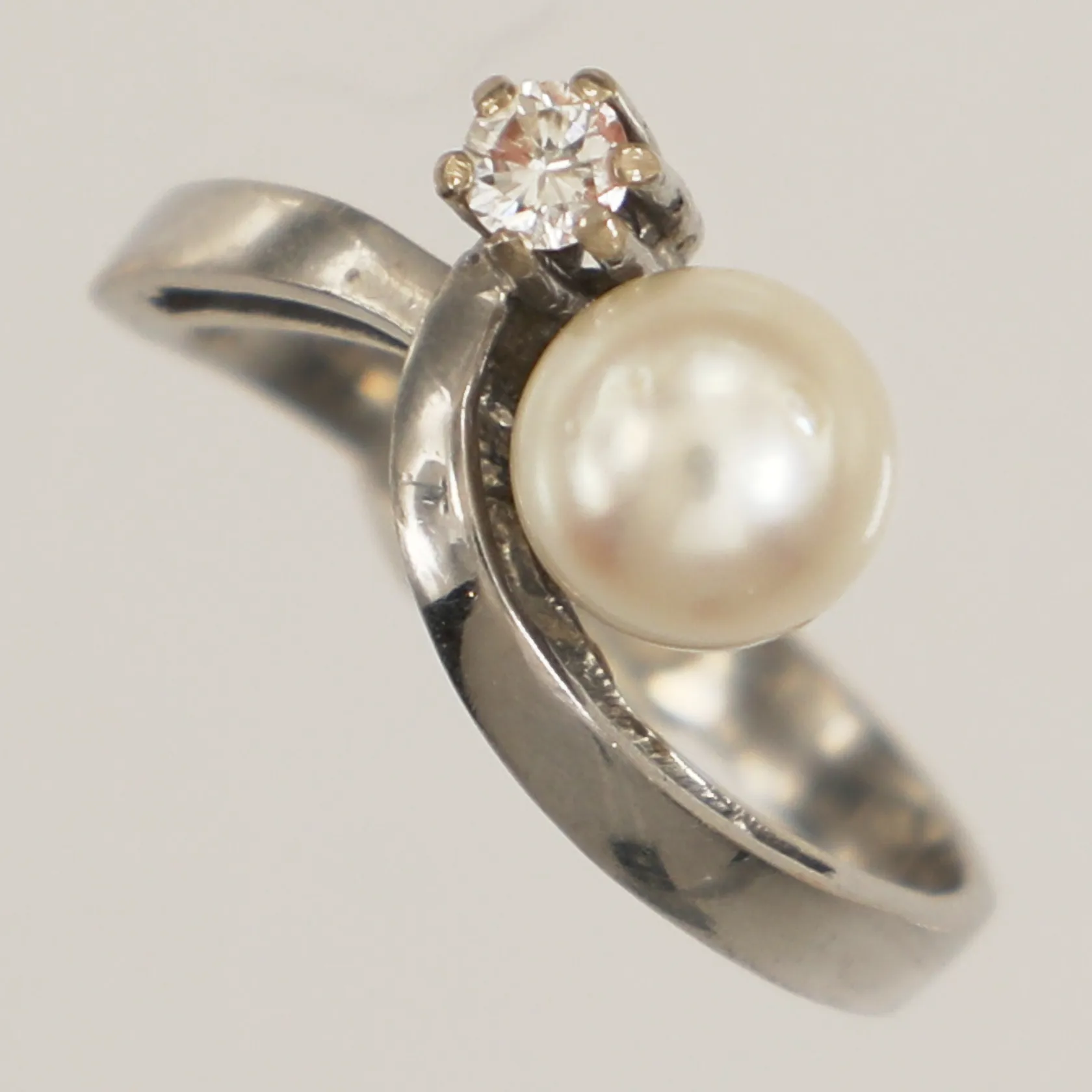 Ring med odlad pärla och diamant, ca0,07ct, stl 16¾, bredd 2,3-7,8mm, vitguld, 18K Vikt: 3,4 g.